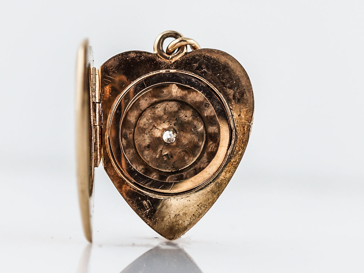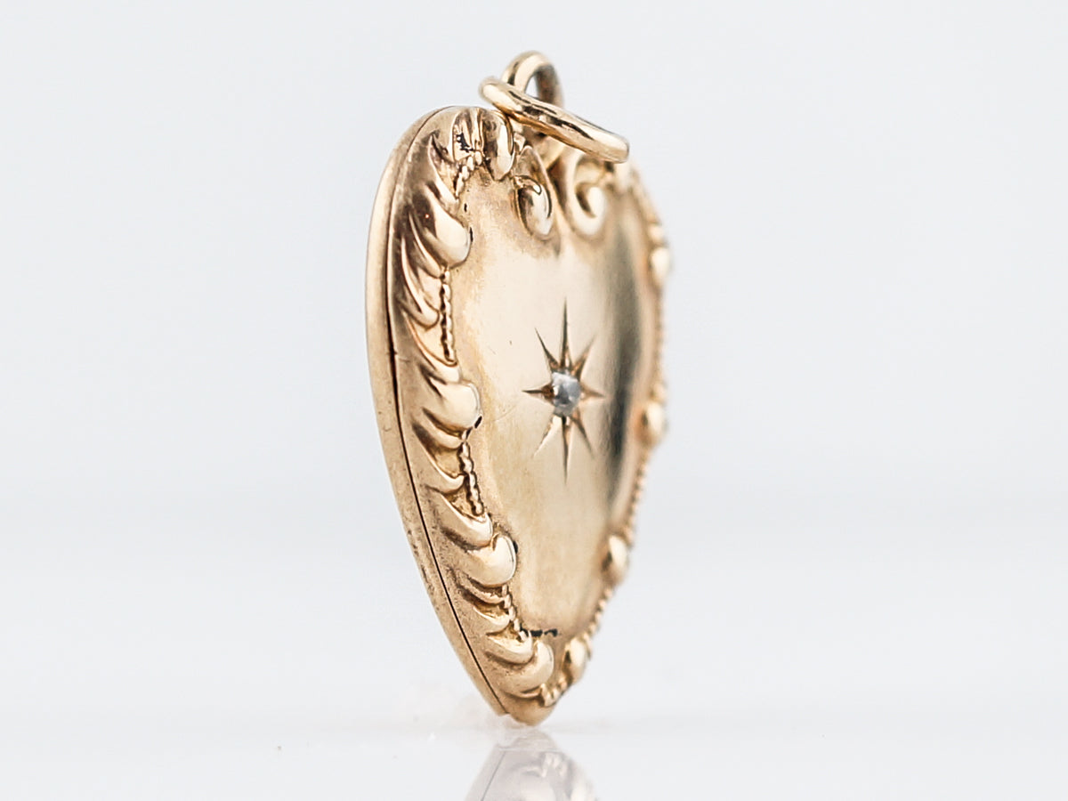 Antique Pendant Charm Engraved Locket Edwardian .03 Old Mine Cut Diamond in 14k Yellow Gold