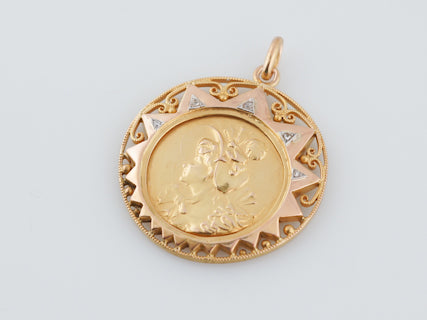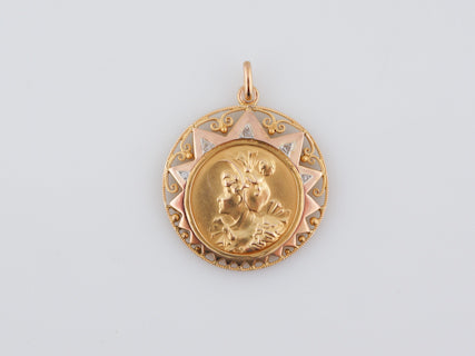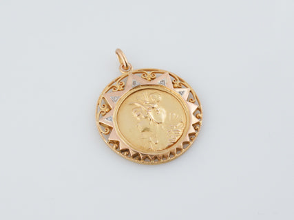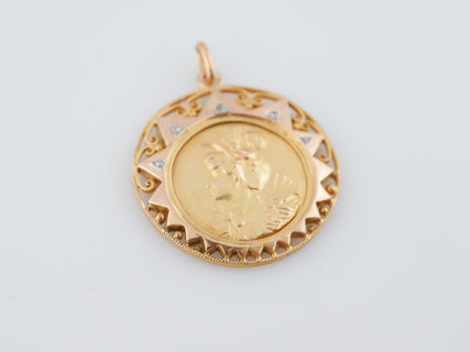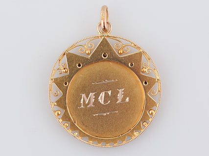 Antique Pendant Charm Gold Disc Art Nouveau 18k Yellow Gold