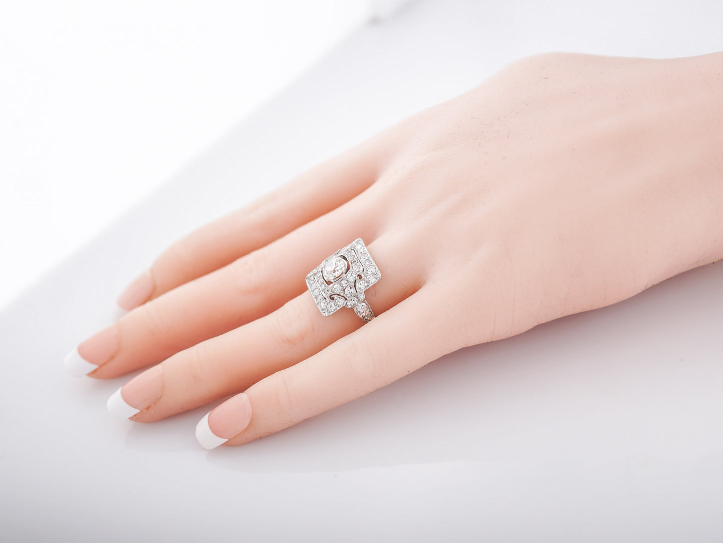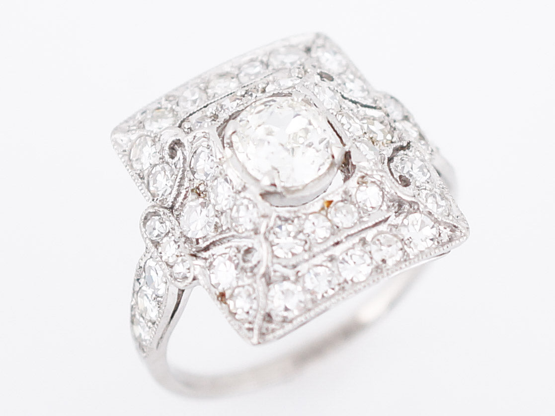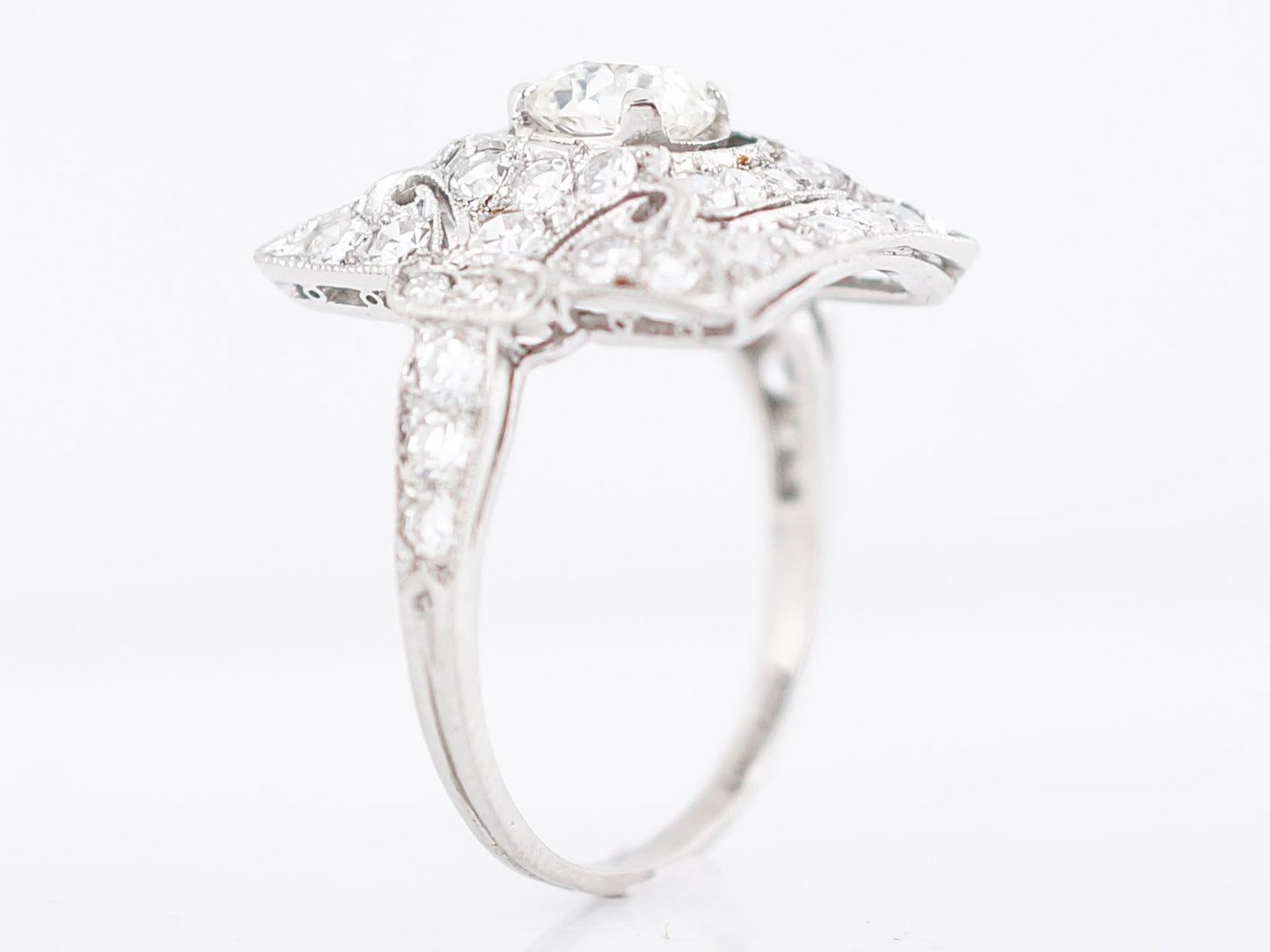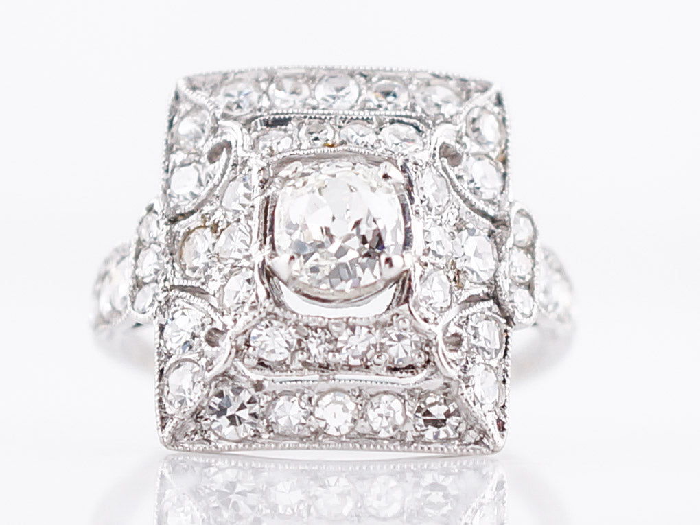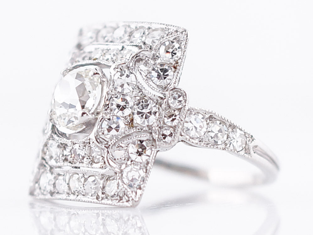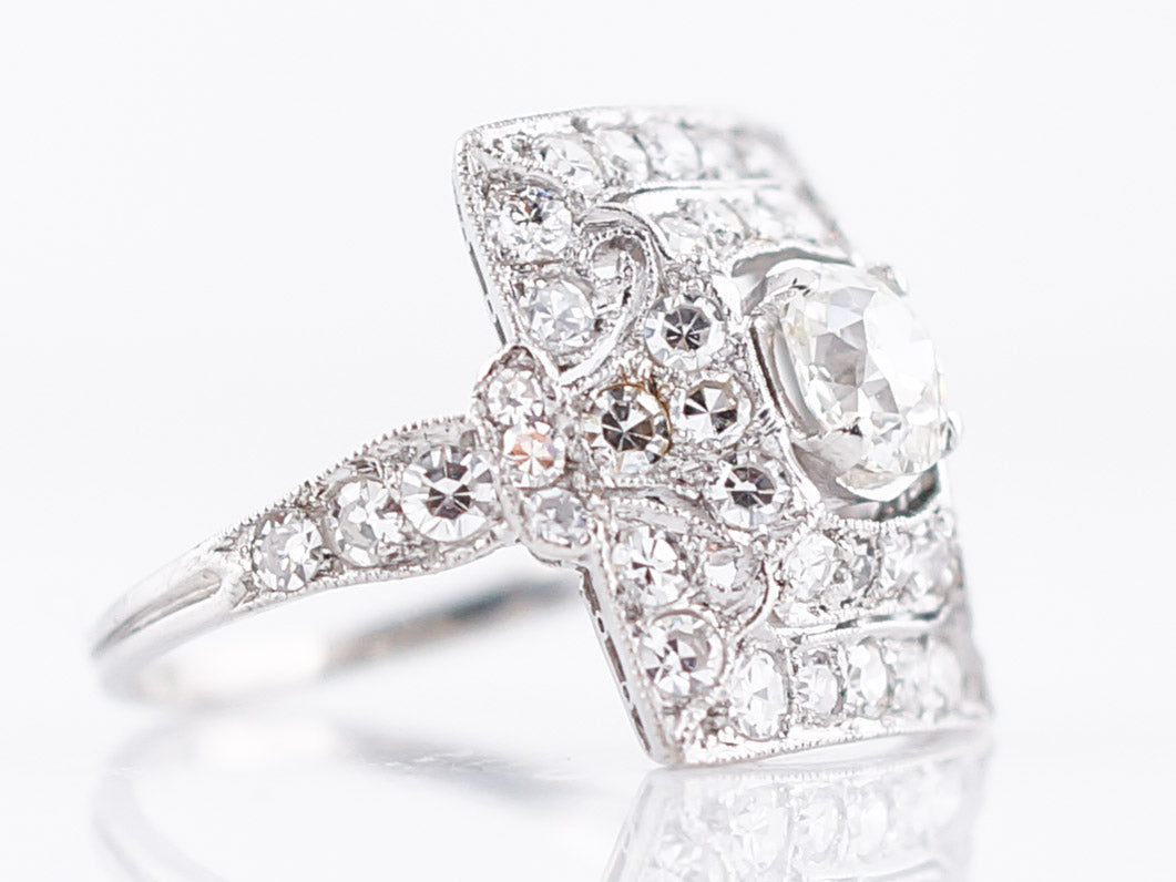 Antique Right Hand Ring Art Deco 1.68 Carat of Old Mine Cushion & Single Cut Diamonds in Platinum