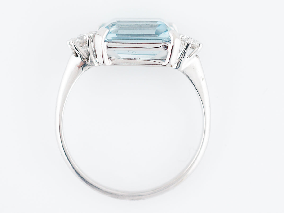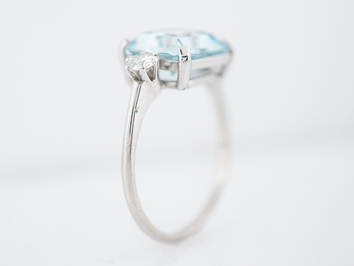 Antique Right Hand Ring Art Deco 2.71 Emerald Cut Aquamarine in Platinum