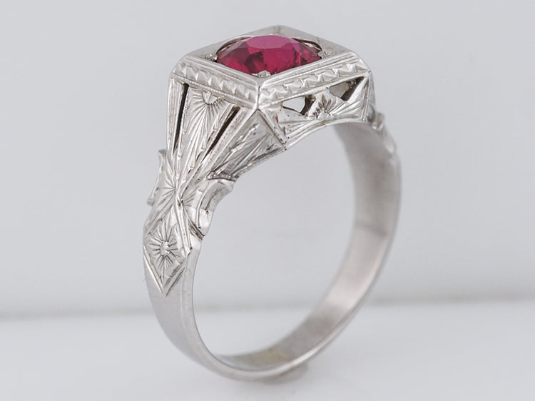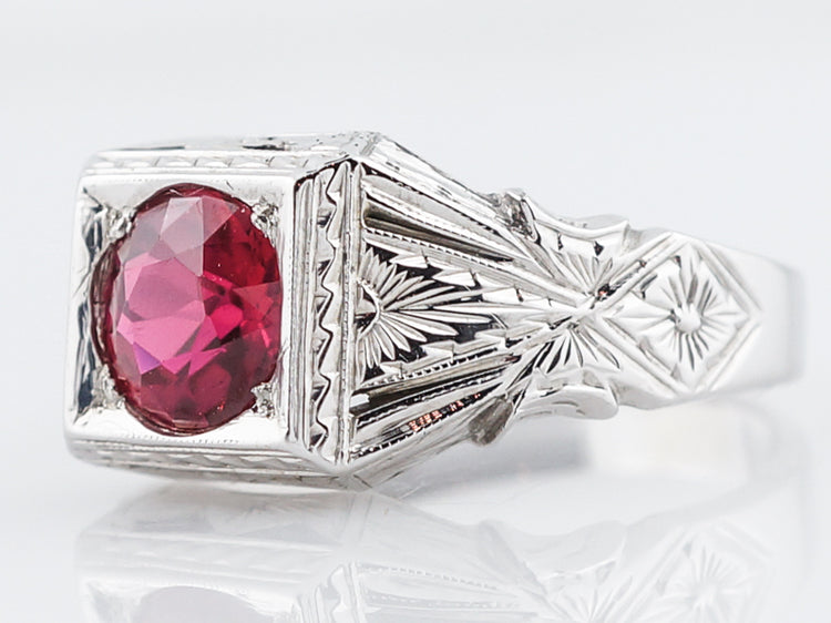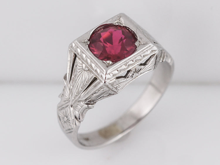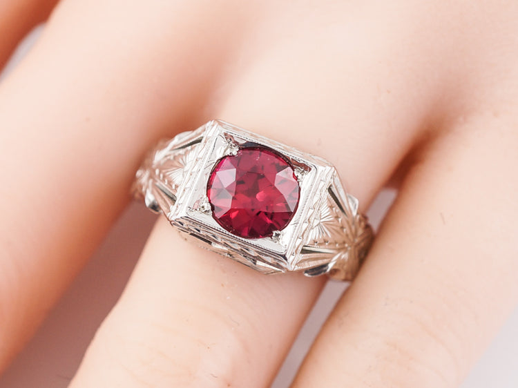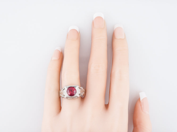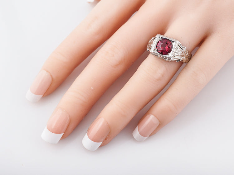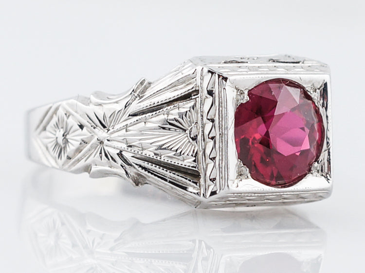 Antique Right Hand Ring Art Deco Belais Brothers 1.50 Round Cut Red Spinel in 18k White Gold