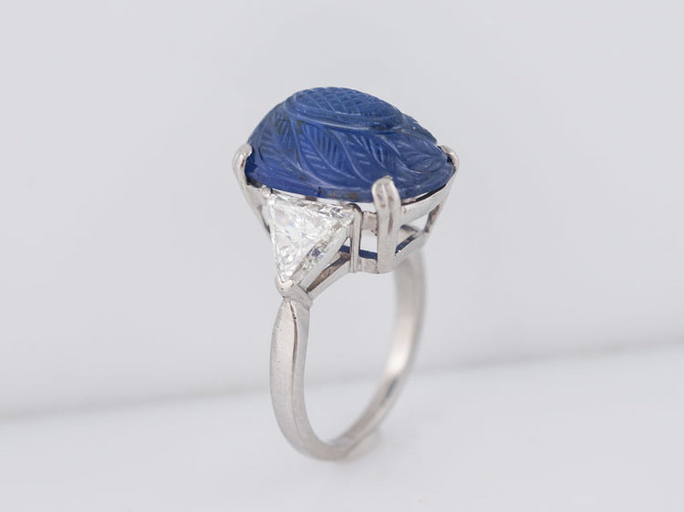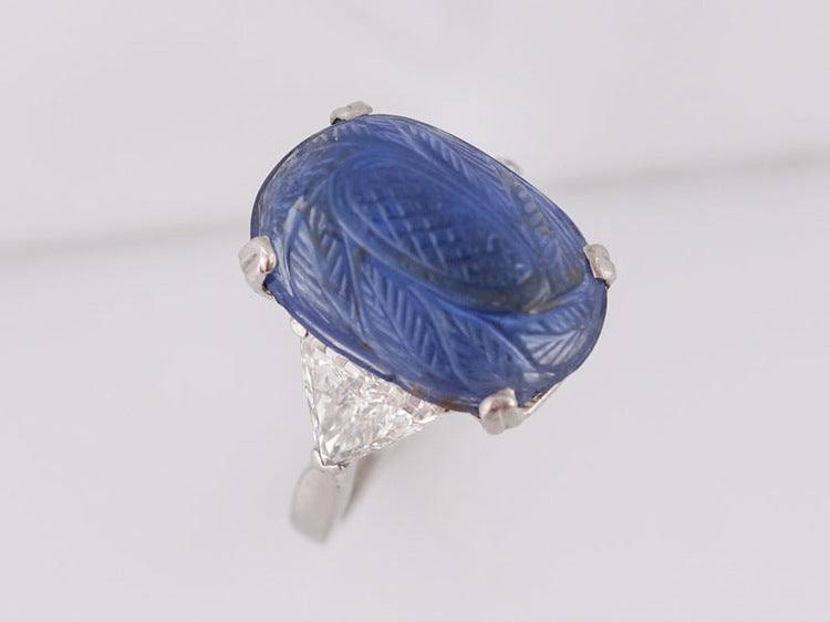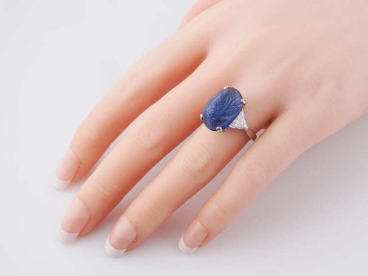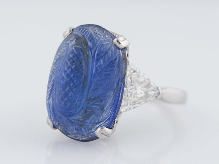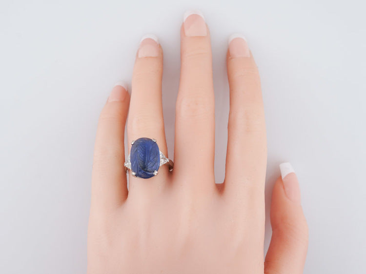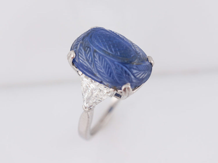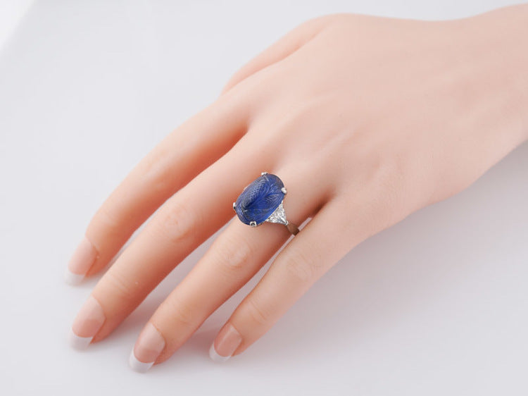 Antique Right Hand Ring Art Deco/Mid Century 11.12ct No Heat Cabochon Cut Sapphire in Platinum