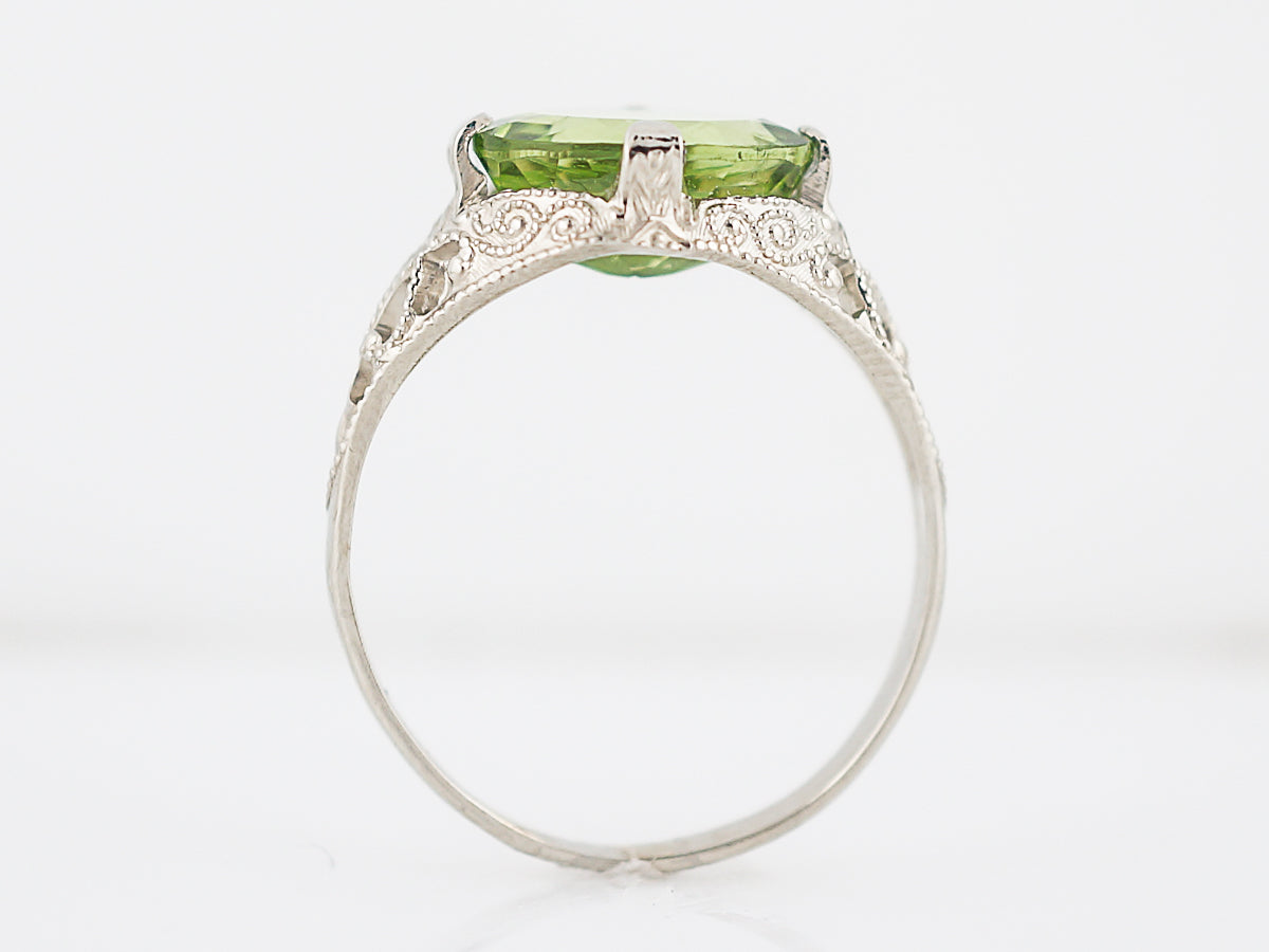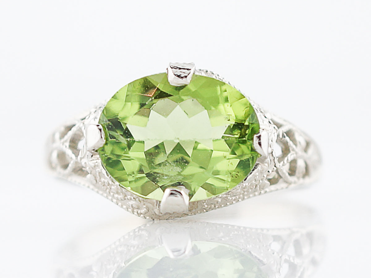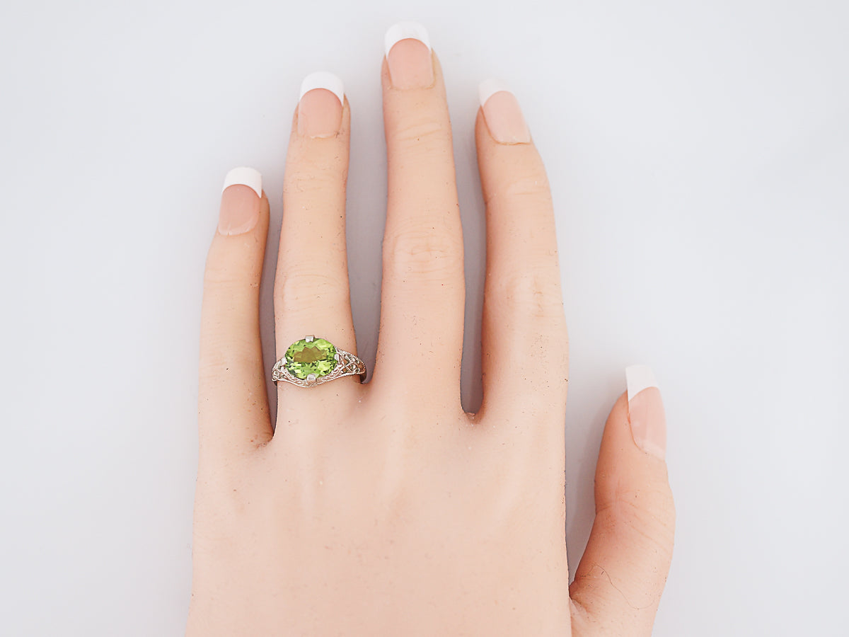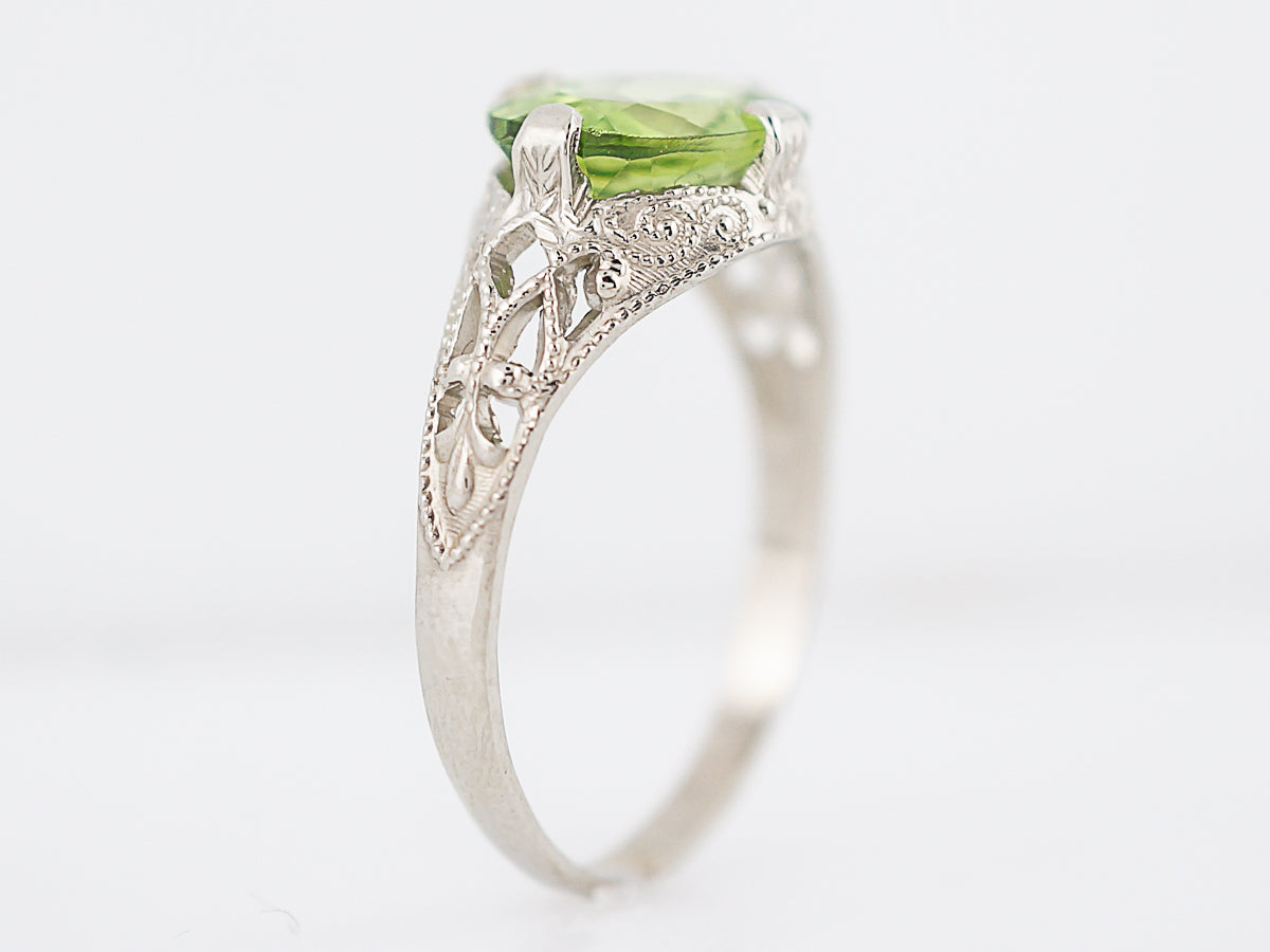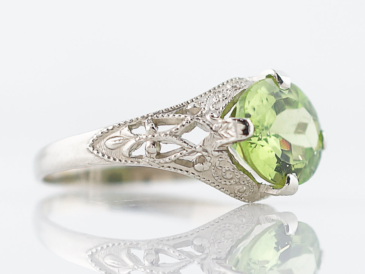 Antique Right Hand Ring Edwardian 2.20 Oval Cut Peridot in 14K White Gold