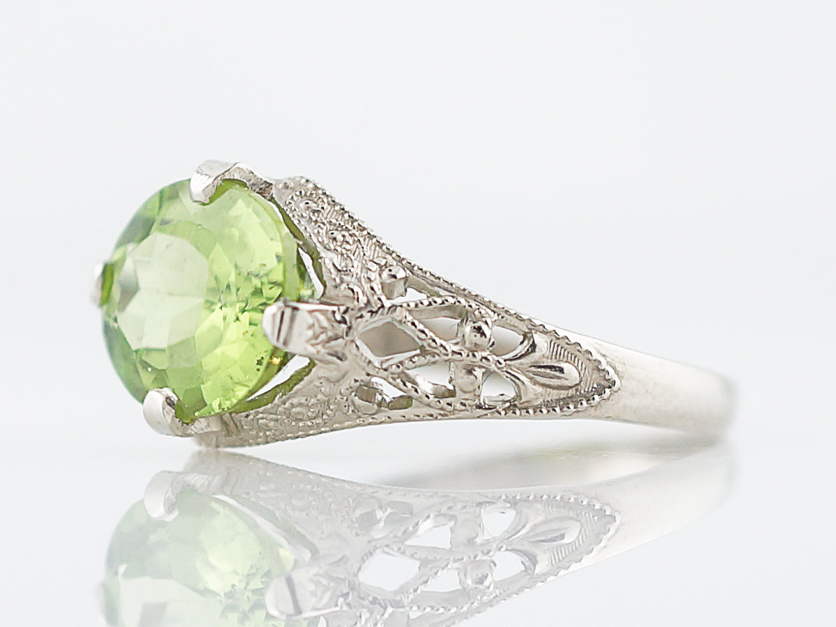 Antique Right Hand Ring Edwardian 2.20 Oval Cut Peridot in 14K White Gold