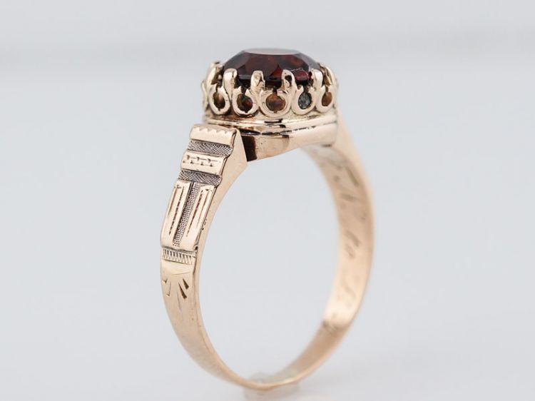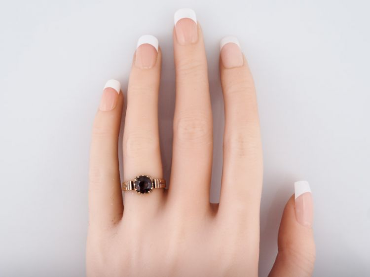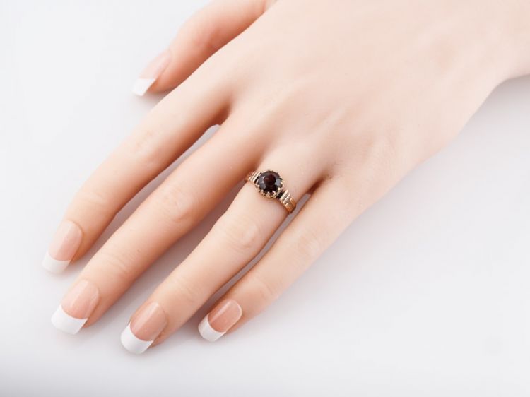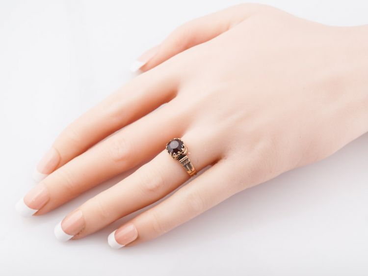 Antique Right Hand Ring Victorian 1.53 Round Cut Garnet in 14k Rose Gold