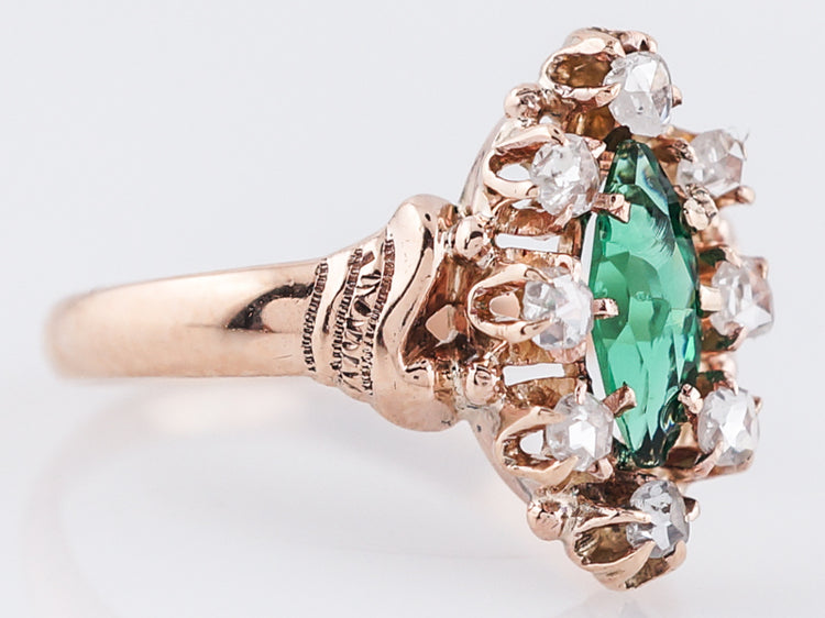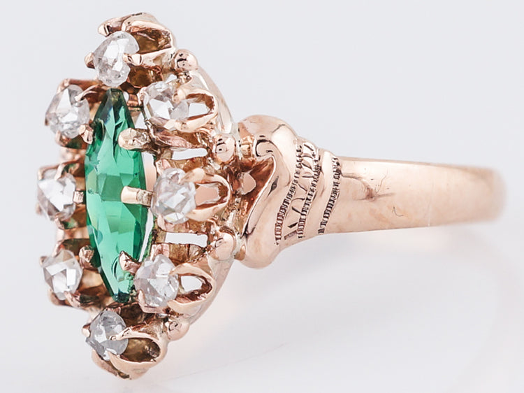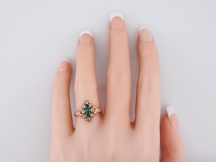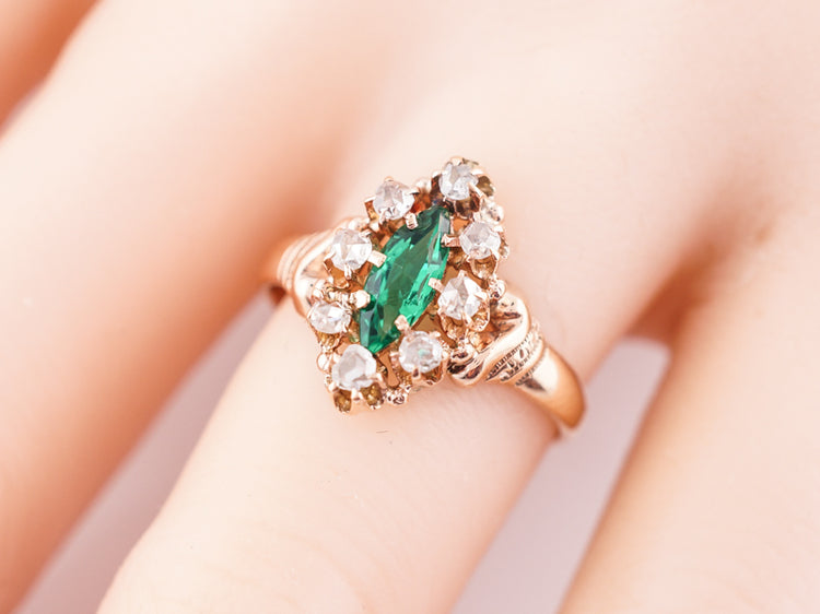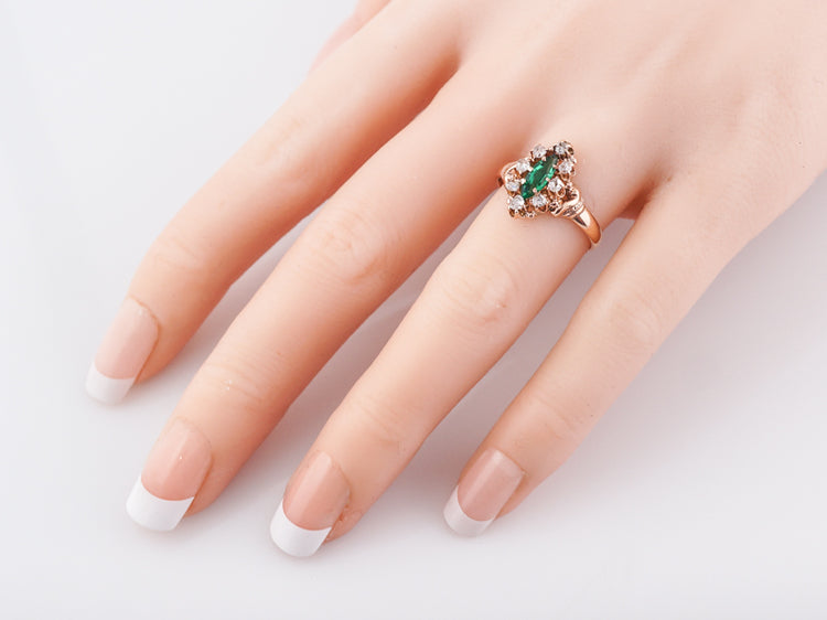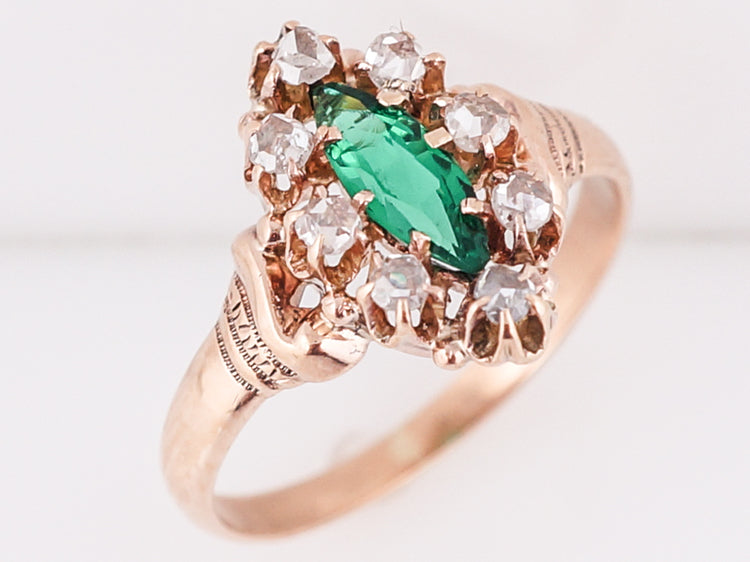 Antique Right Hand Ring Victorian .30 Marquis Cut Synthetic Emerald in 10k Rose Gold