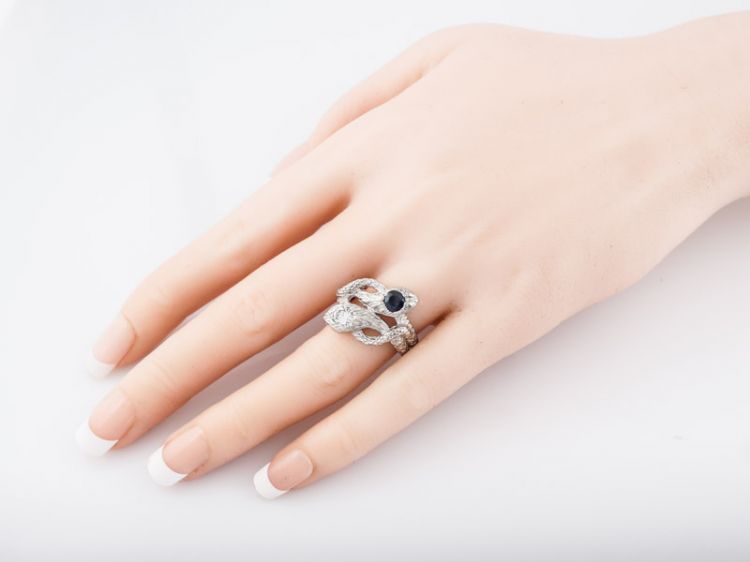 Antique Right Hand Snake Ring Art Deco .40 Old European Cut Diamond & .35 Round Cut Sapphire in Platinum