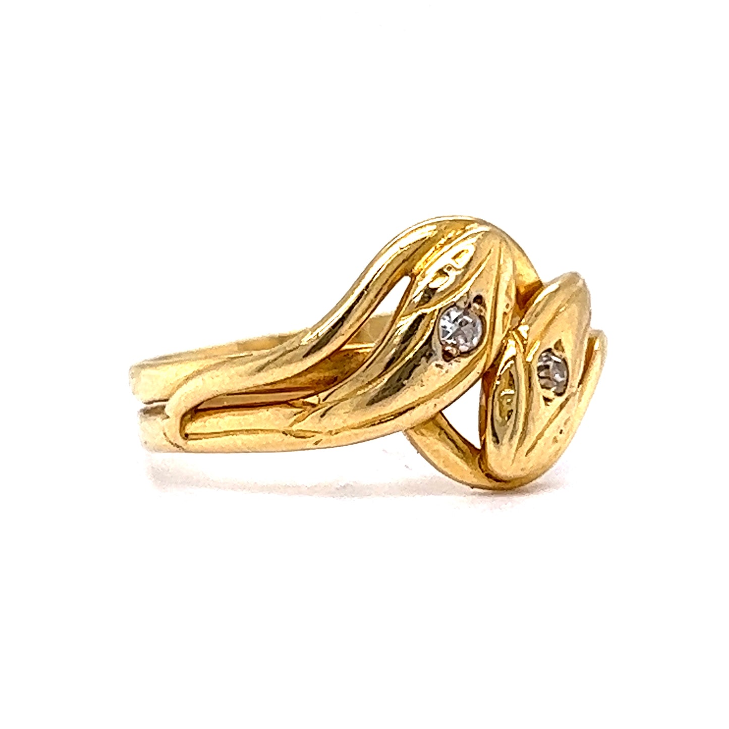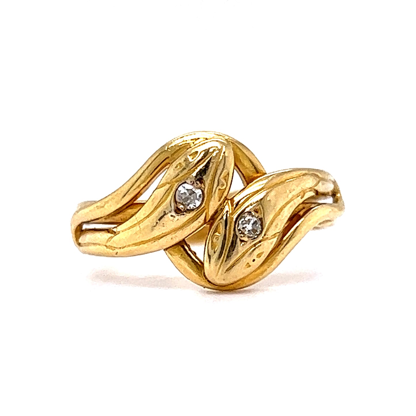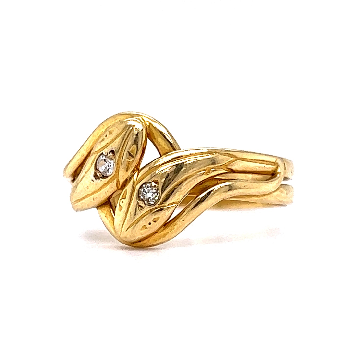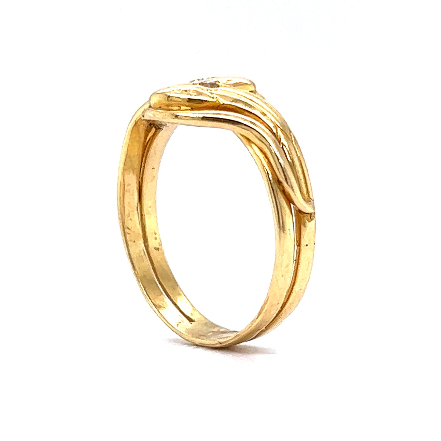 Victorian Right Hand Snake Ring with Diamonds in 18K Yellow Gold