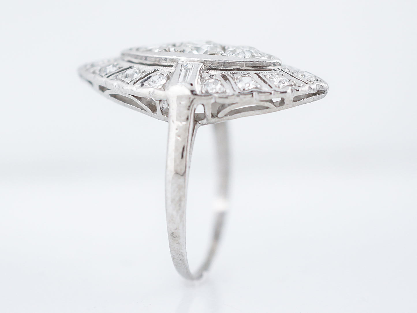 Antique Right Hand Ring Art Deco 1.17 Old European Cut Diamond in Platinum