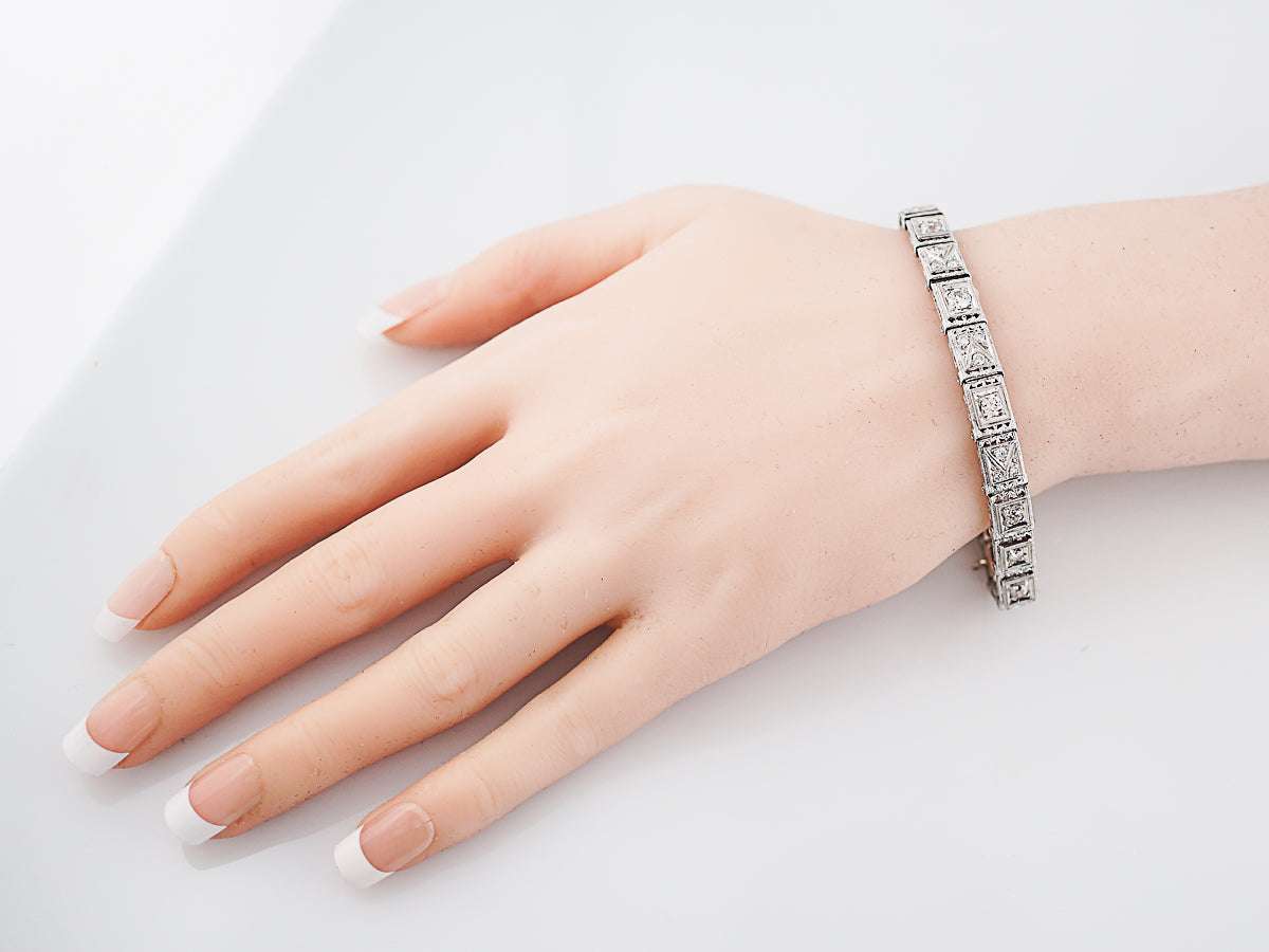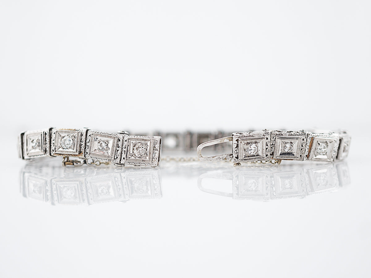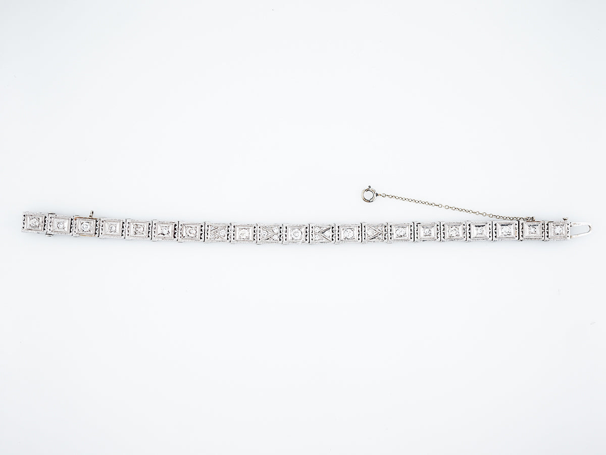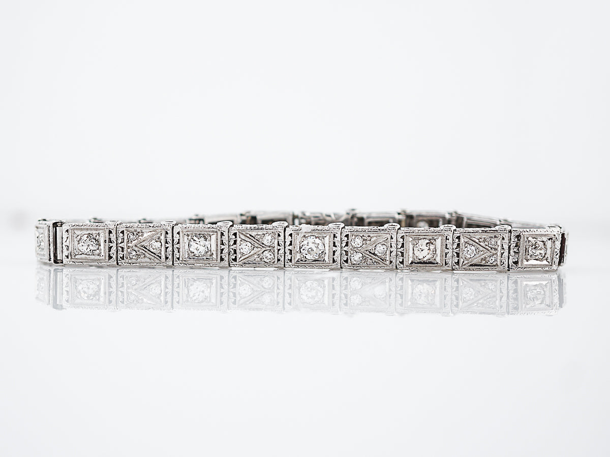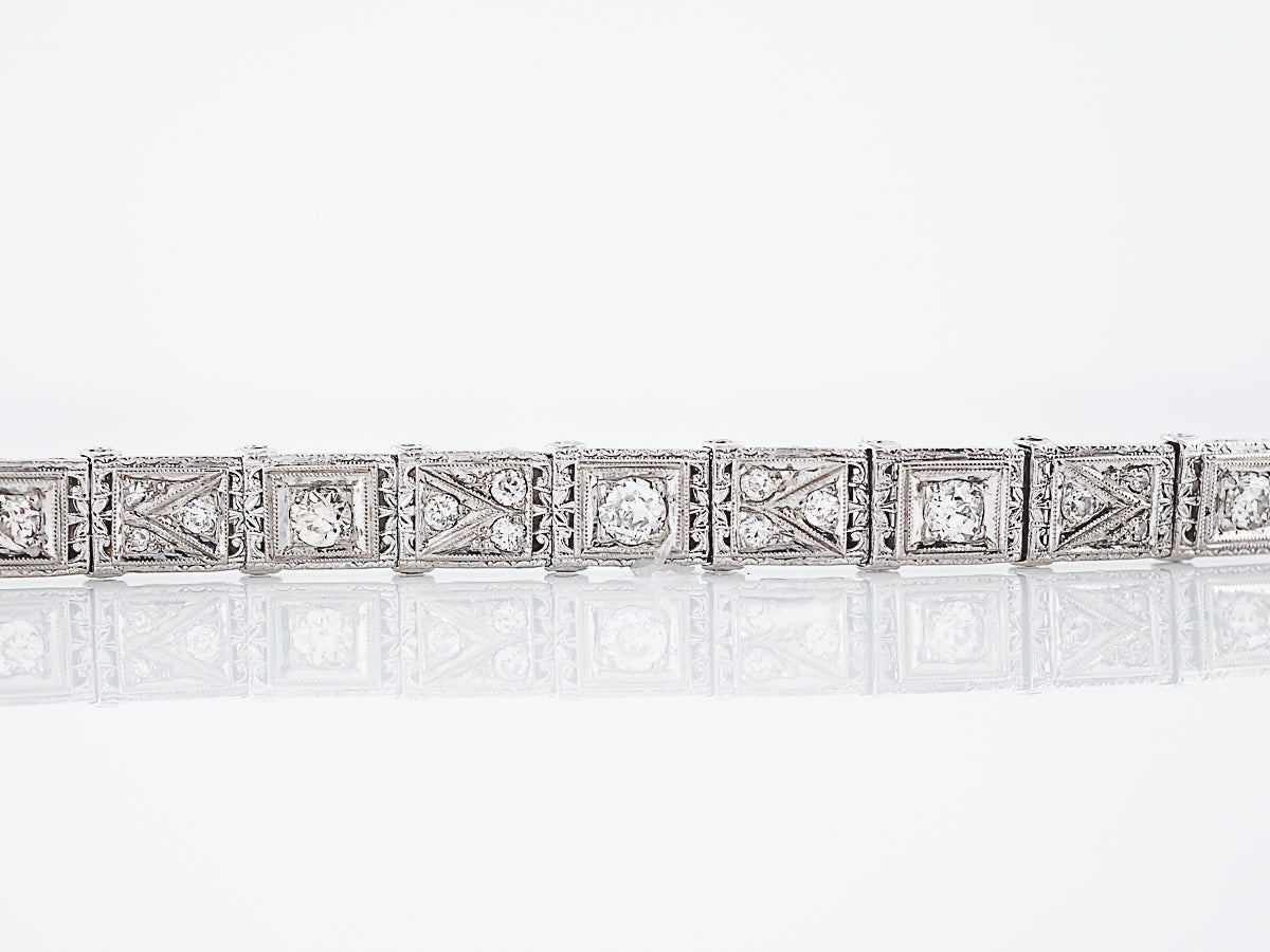 Antique Straight Line Bracelet Art Deco 2.00 Old European Cut Diamonds in 14K White Gold & Platinum
