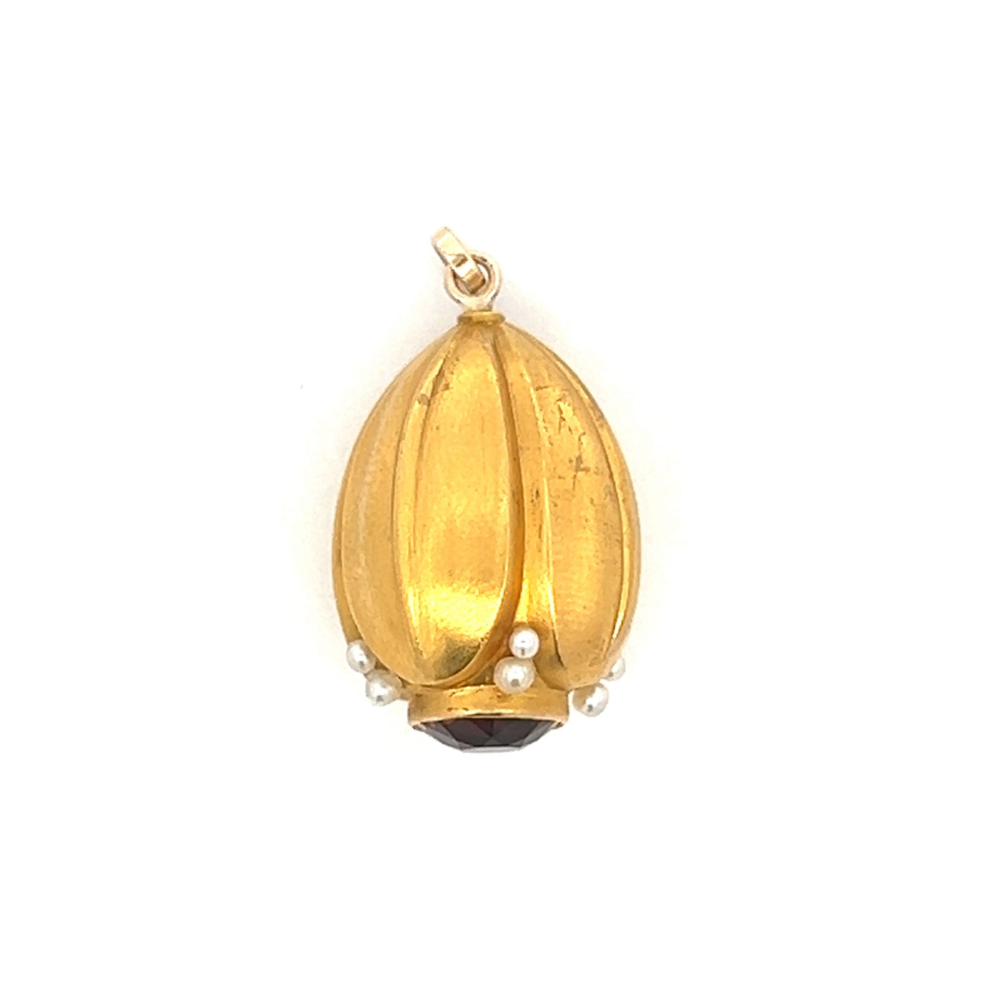 Antique Victorian Citrine & Seed Pearl Pendant in Yellow Gold