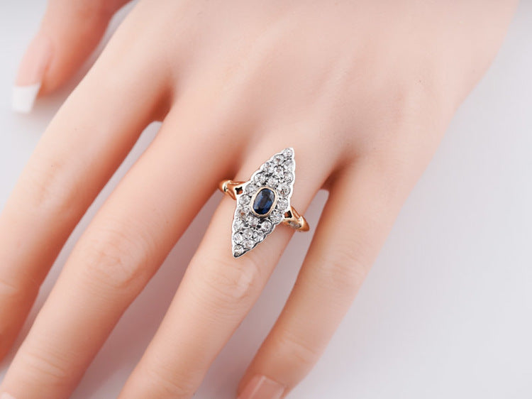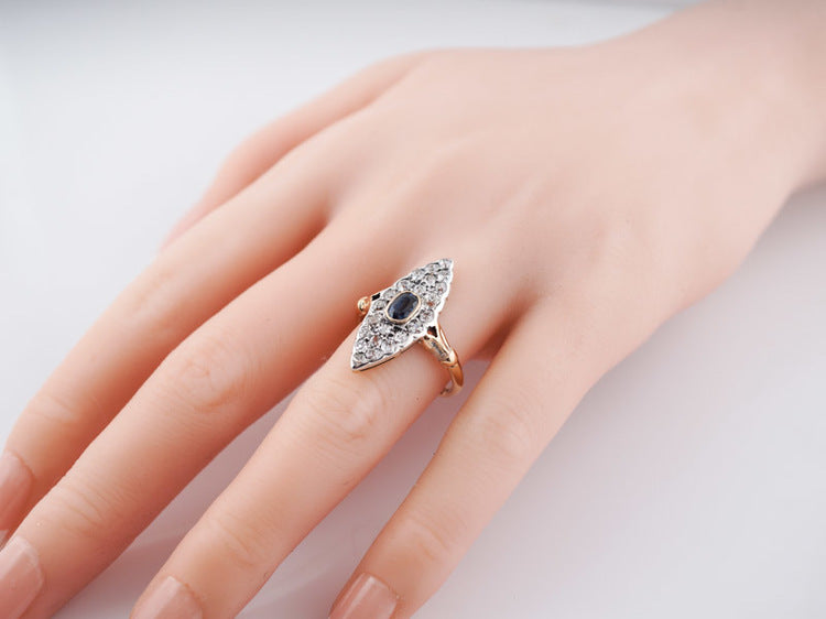 Antique Victorian Navette Ring 1.54cttw Old Mine Cut Diamonds in 18k Yellow Gold & Silver