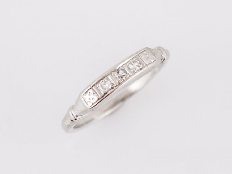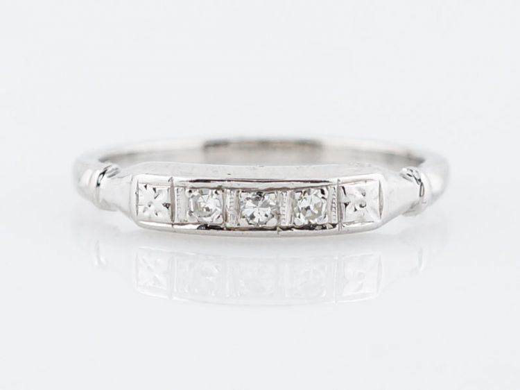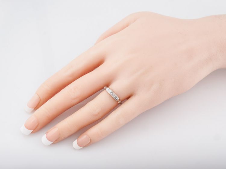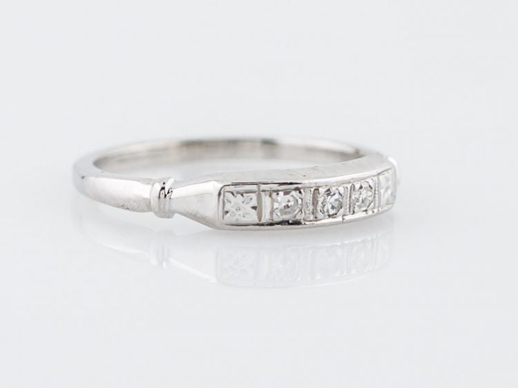 Antique Wedding Band Art Deco .09 Single Cut Diamonds in 14k White Gold