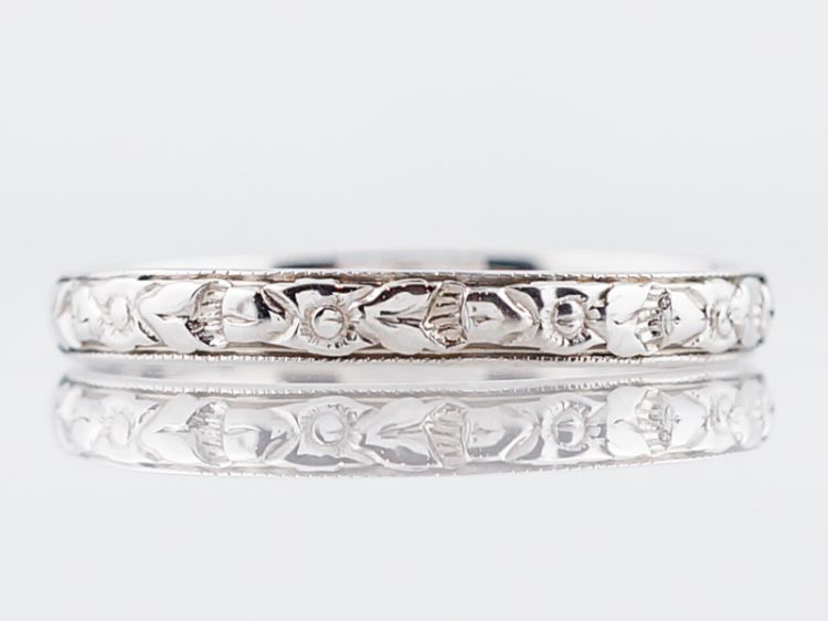 Antique Wedding Band Art Deco Belais Brothers Orange Blossom in 18k White Gold