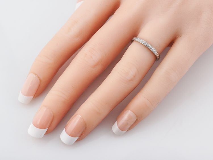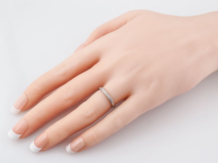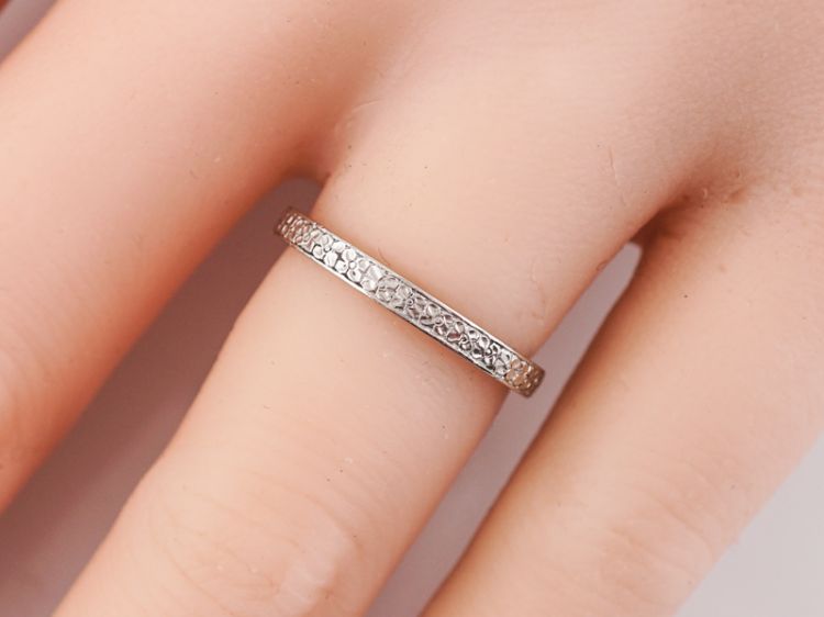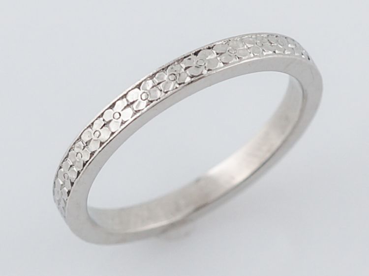Antique Wedding Band Art Deco Floral Engraved in Platinum