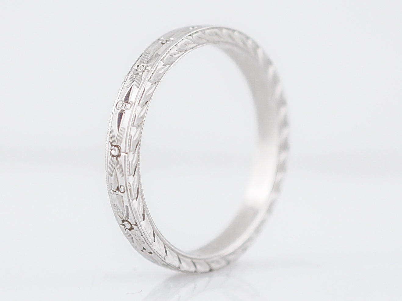 Antique Wedding Band Art Deco Orange Blossom in 18k White Gold