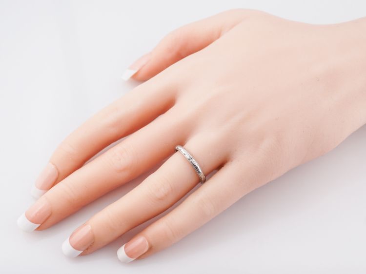 Antique Wedding Band Art Deco Orange Blossom in 18k White Gold
