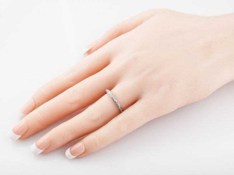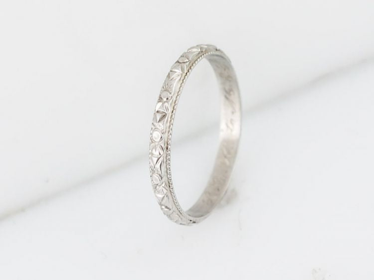 Antique Wedding Band Art Deco Orange Blossom in 18k White Gold