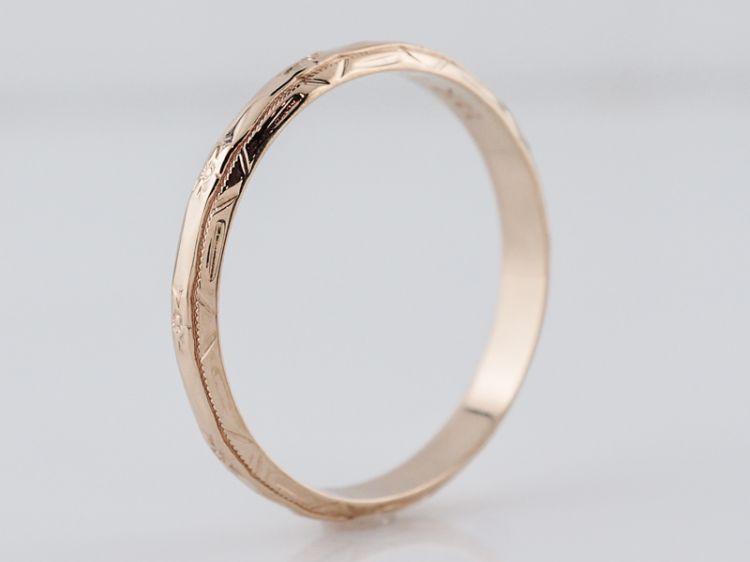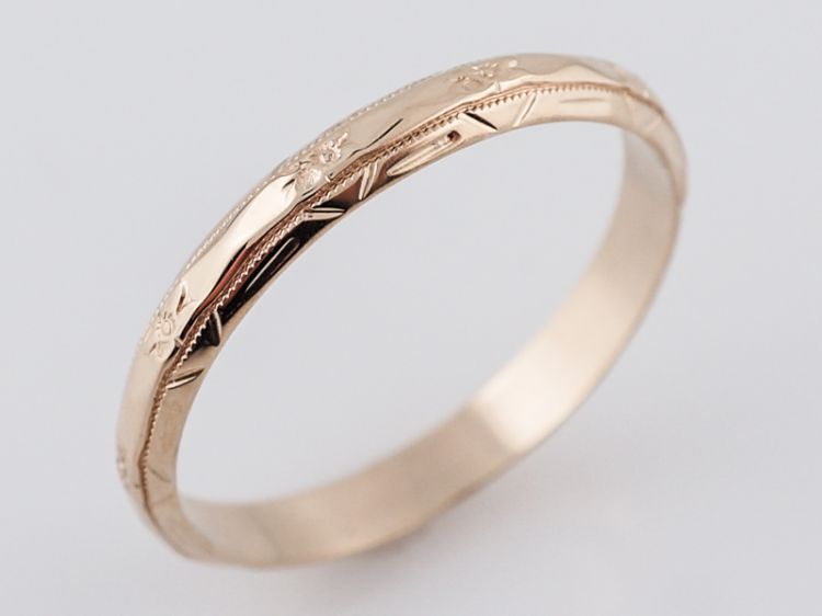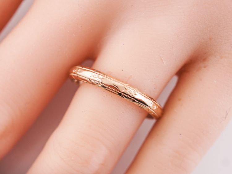 Antique Wedding Band Art Deco Orange Blossom in 14k Yellow Gold