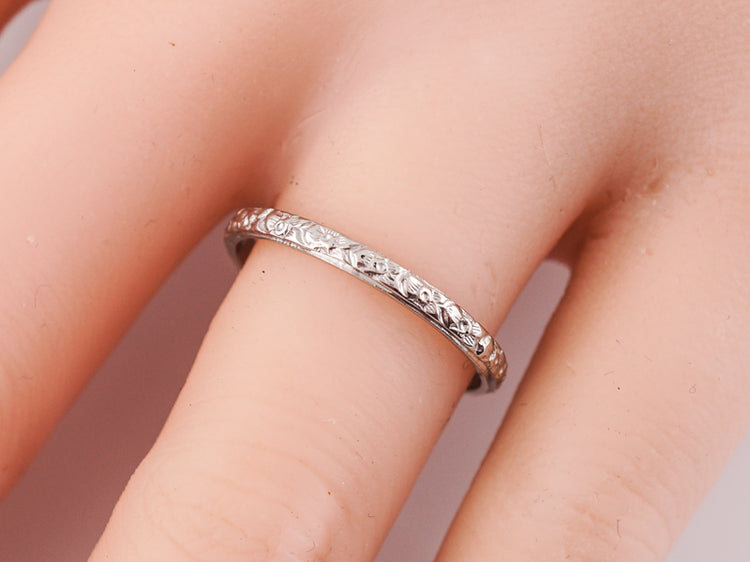 Antique Wedding Band Art Deco Orange Blossom in Platinum