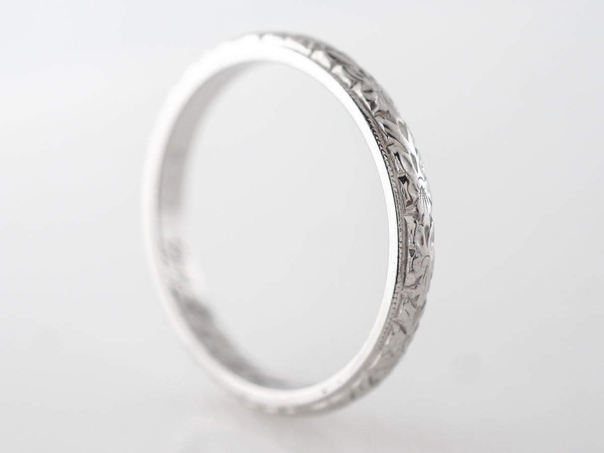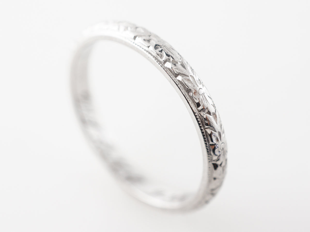 Antique Wedding Band w/ Engraving in 18k White Gold