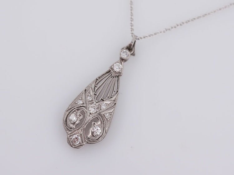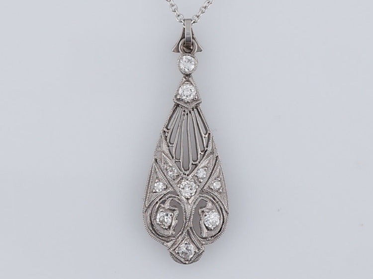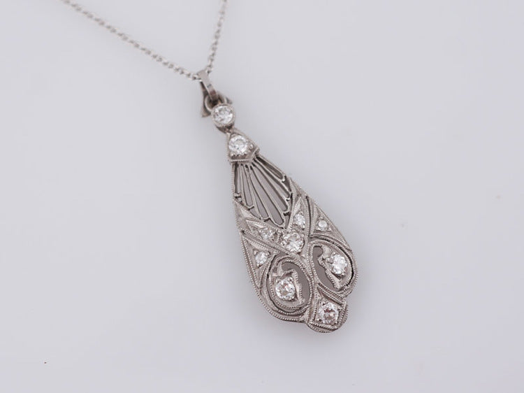 Art Deco 0.28 ct Diamond and Platinum Lavalier Pendant with Chain