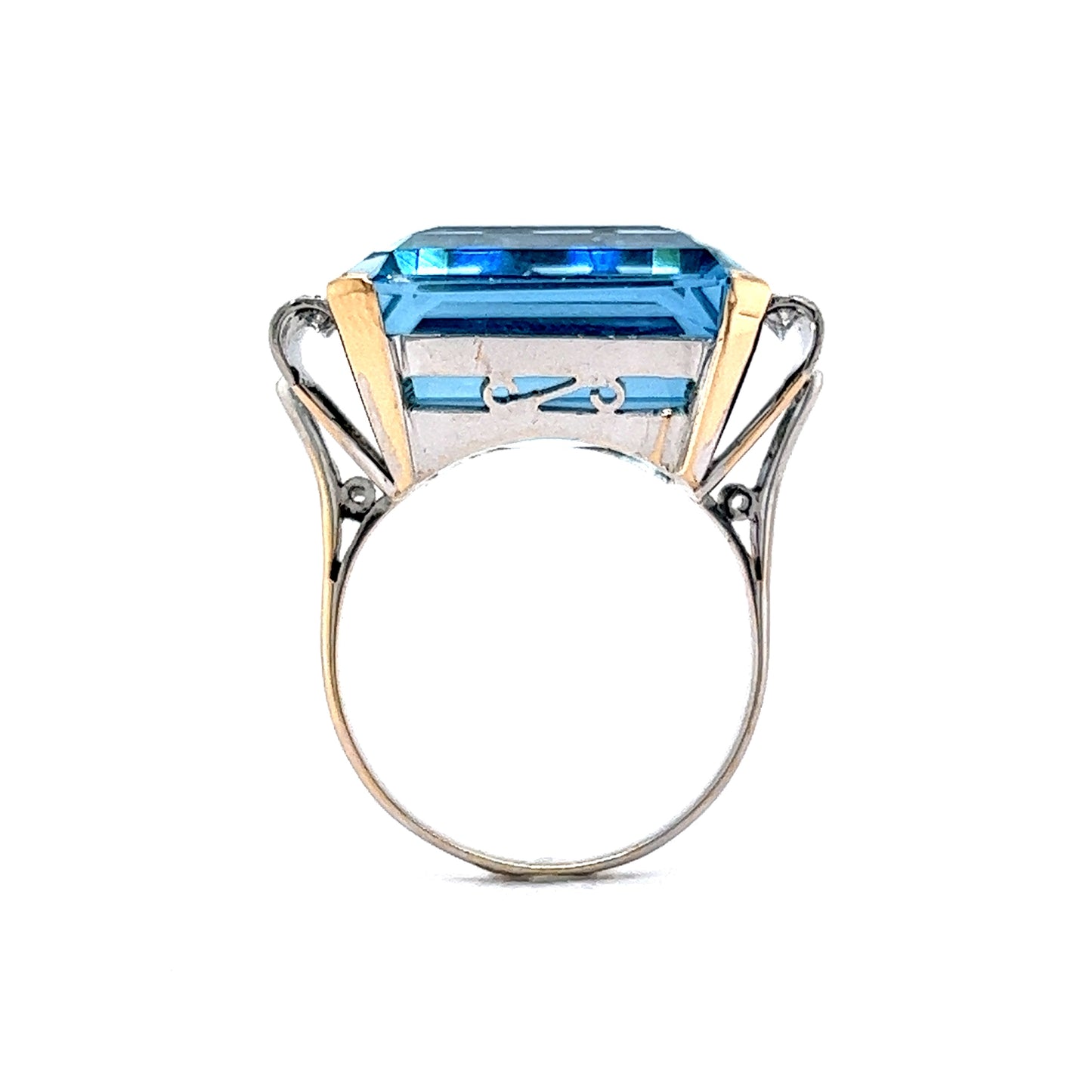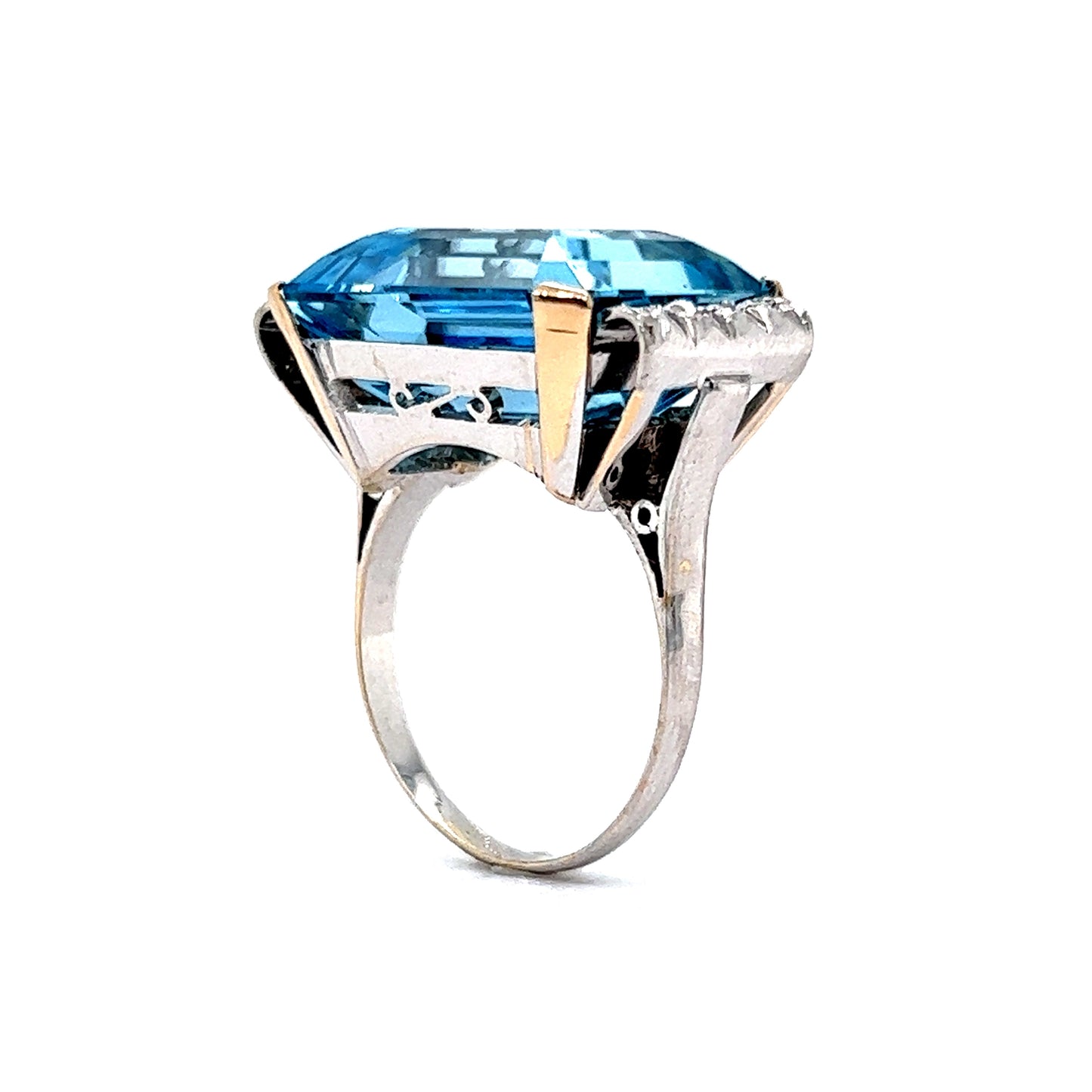 Art Deco Aquamarine Cocktail Ring w/ Diamonds in Platinum & 14k