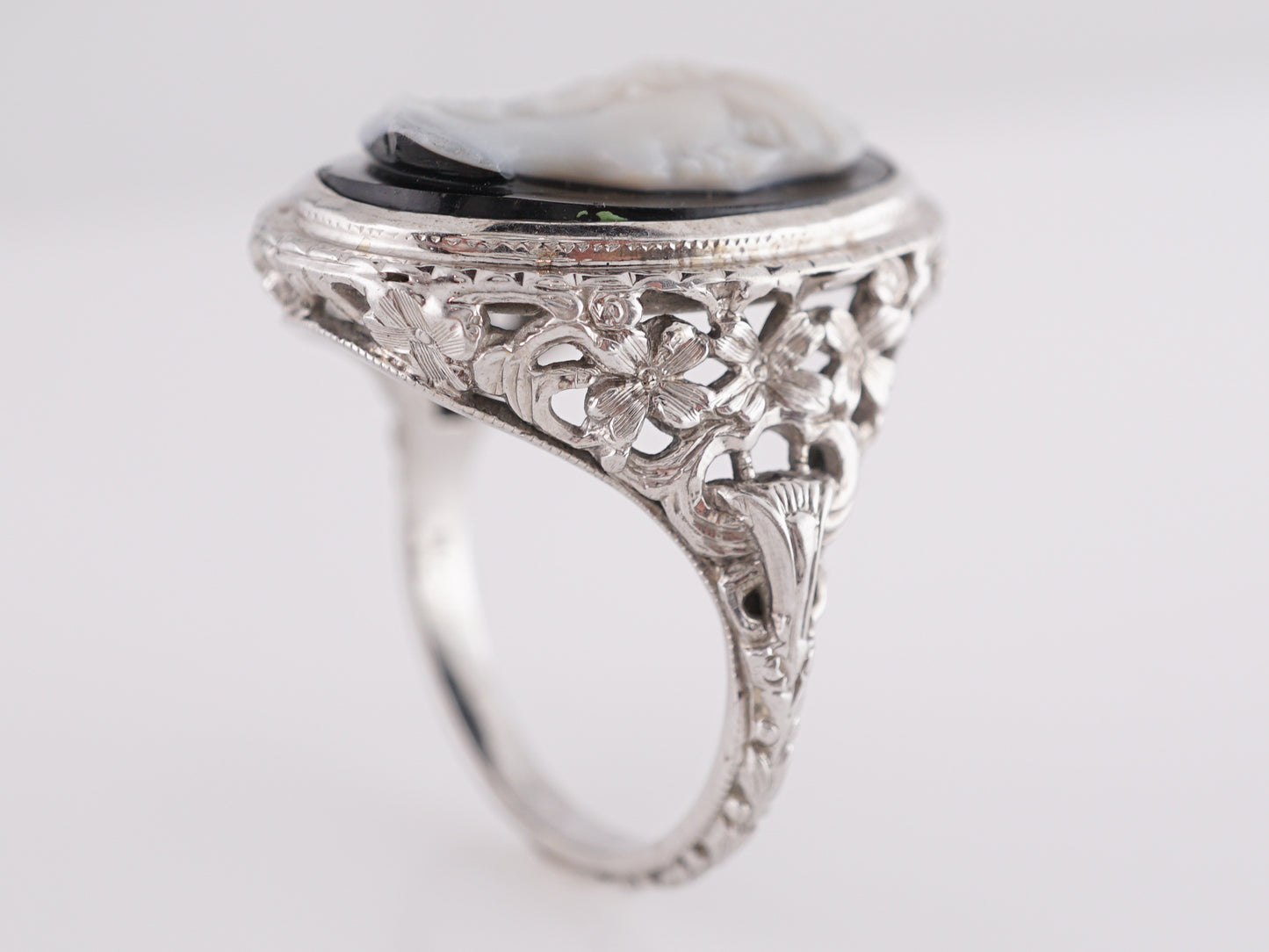 Art Deco Cameo Ring in 18K White Gold
