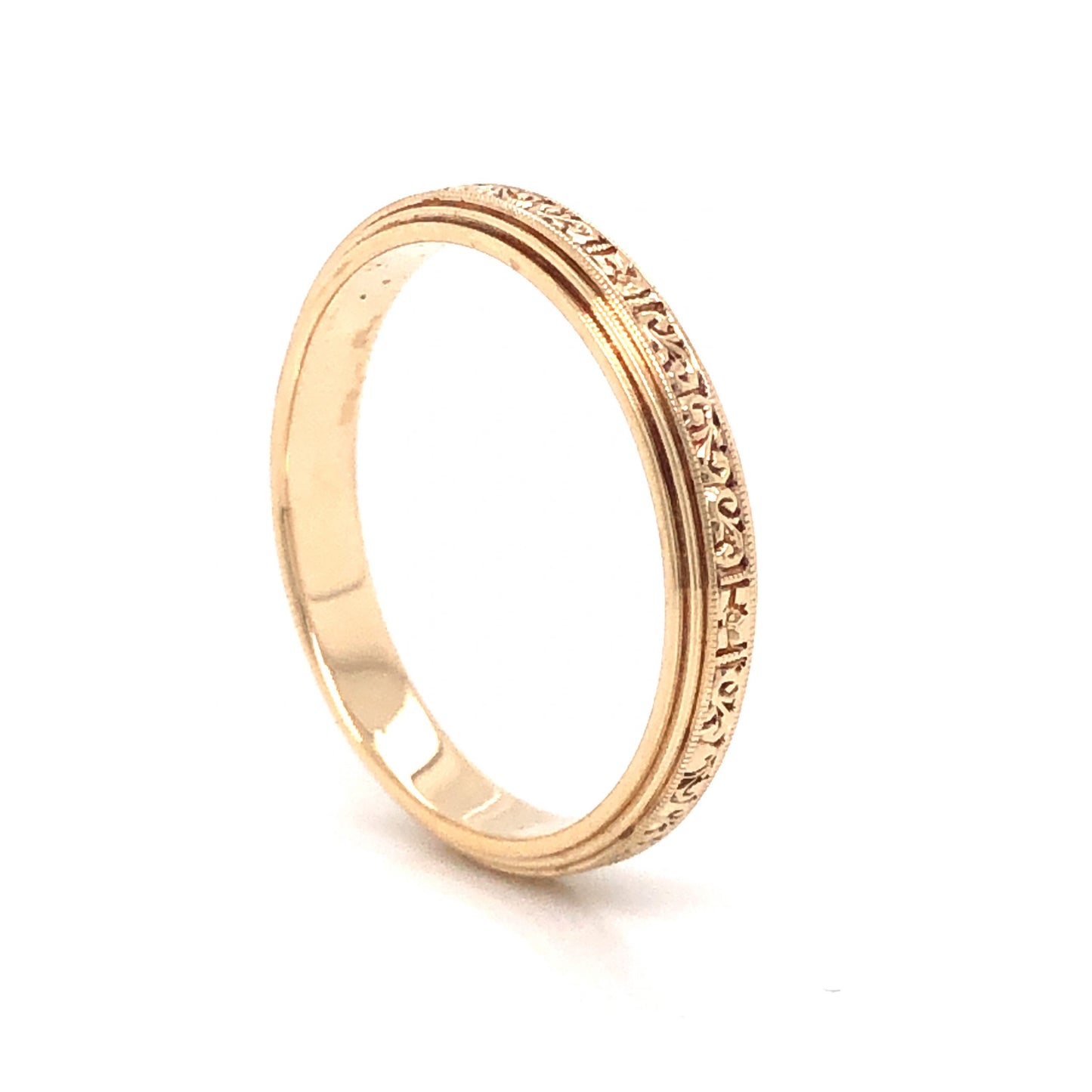 Art Deco Filigree Engraved Wedding Band in 14k Yellow Gold