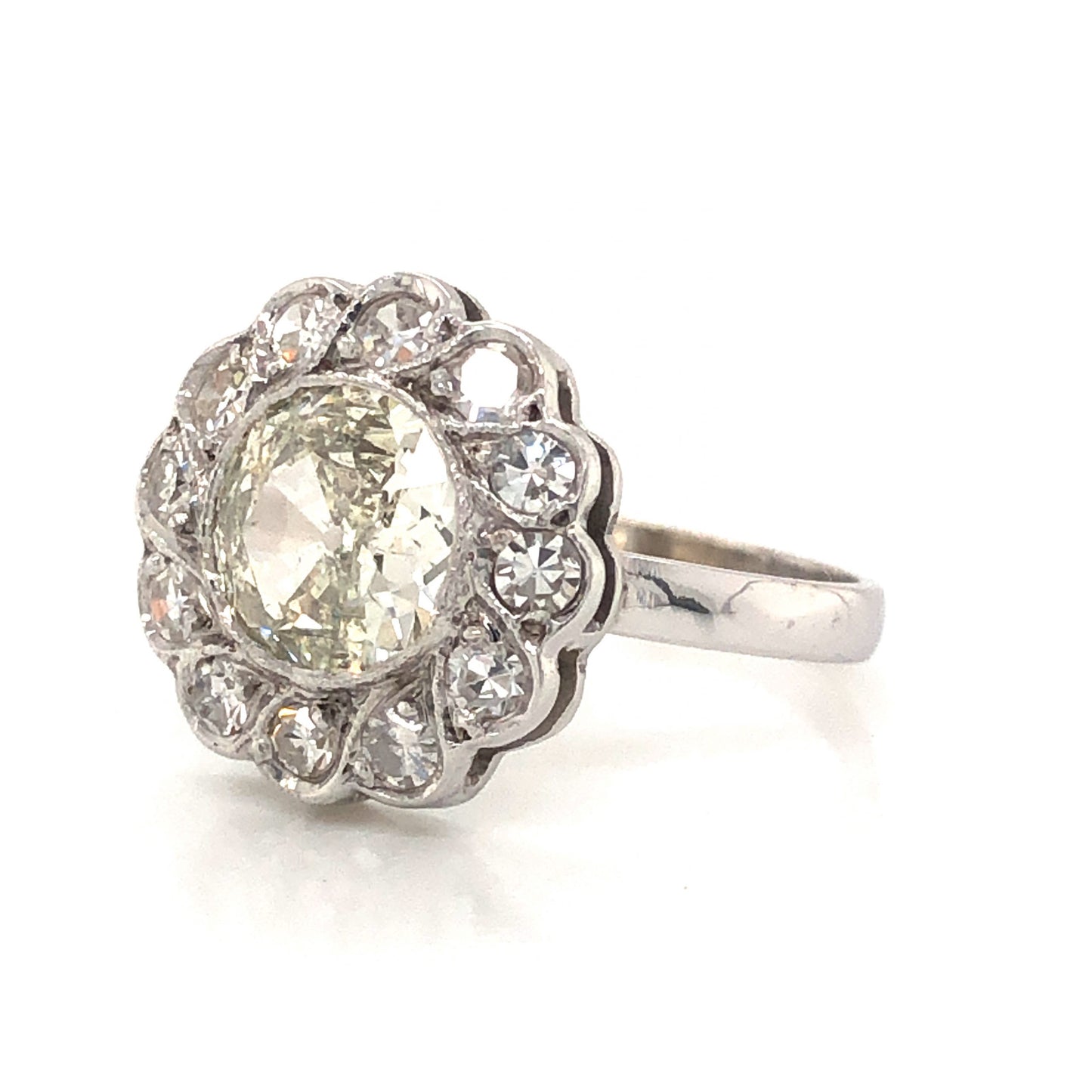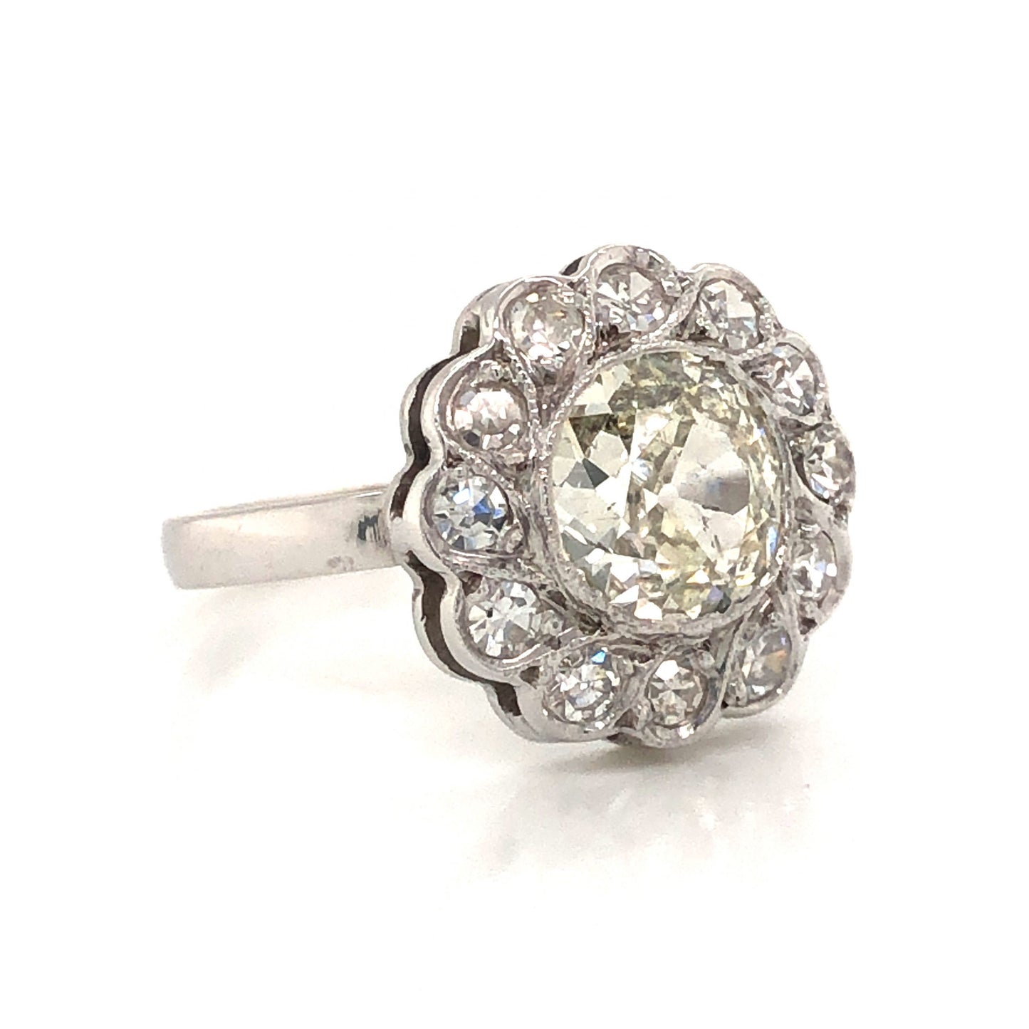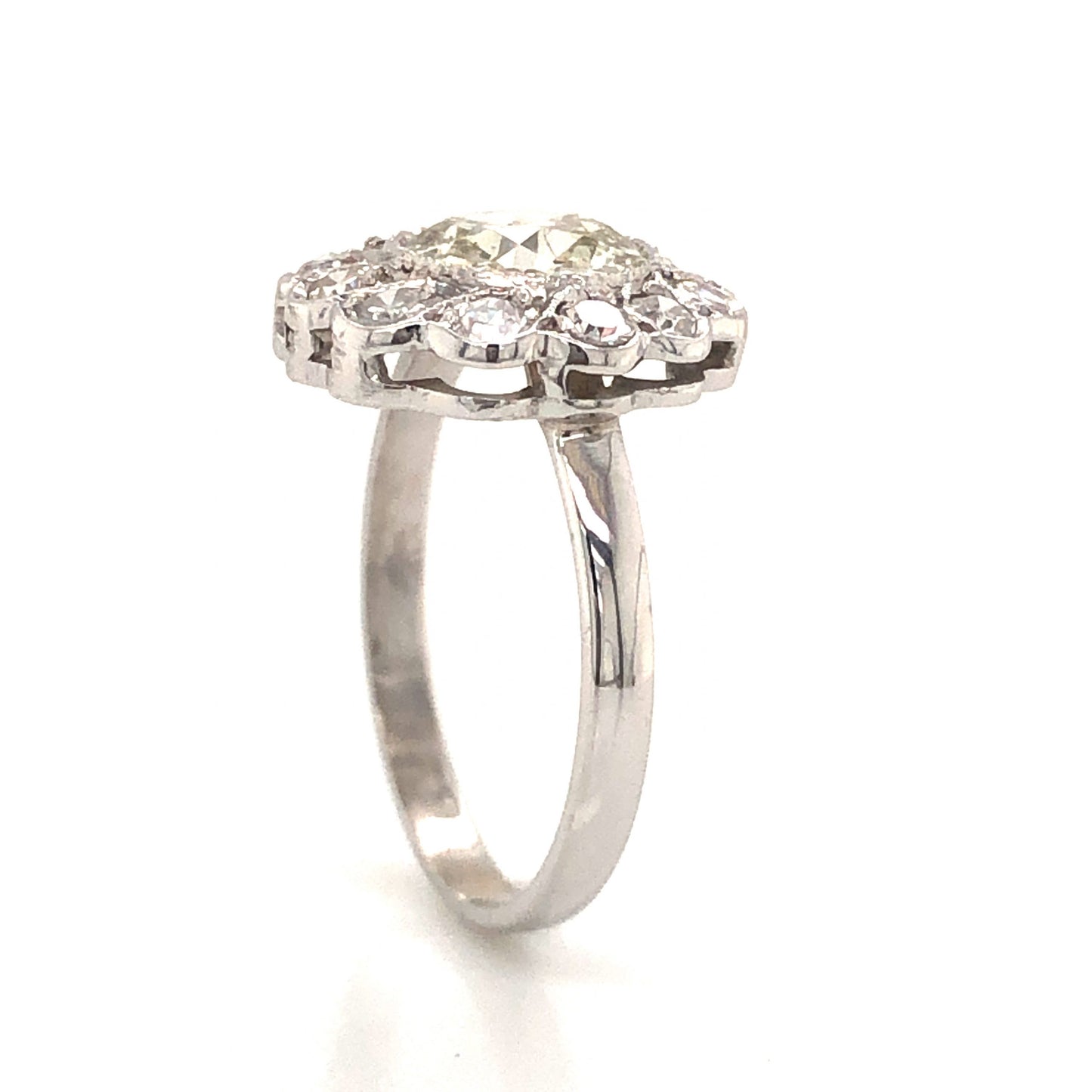 Art Deco Floral Diamond Cluster Engagement Ring in 14k White Gold