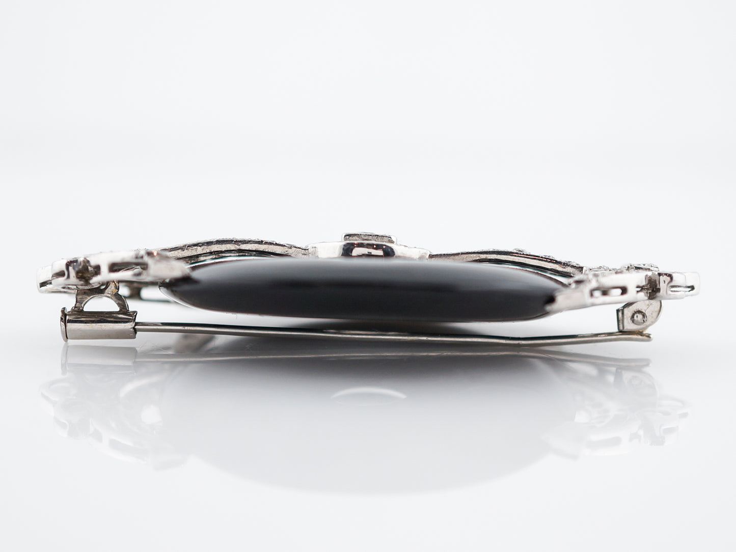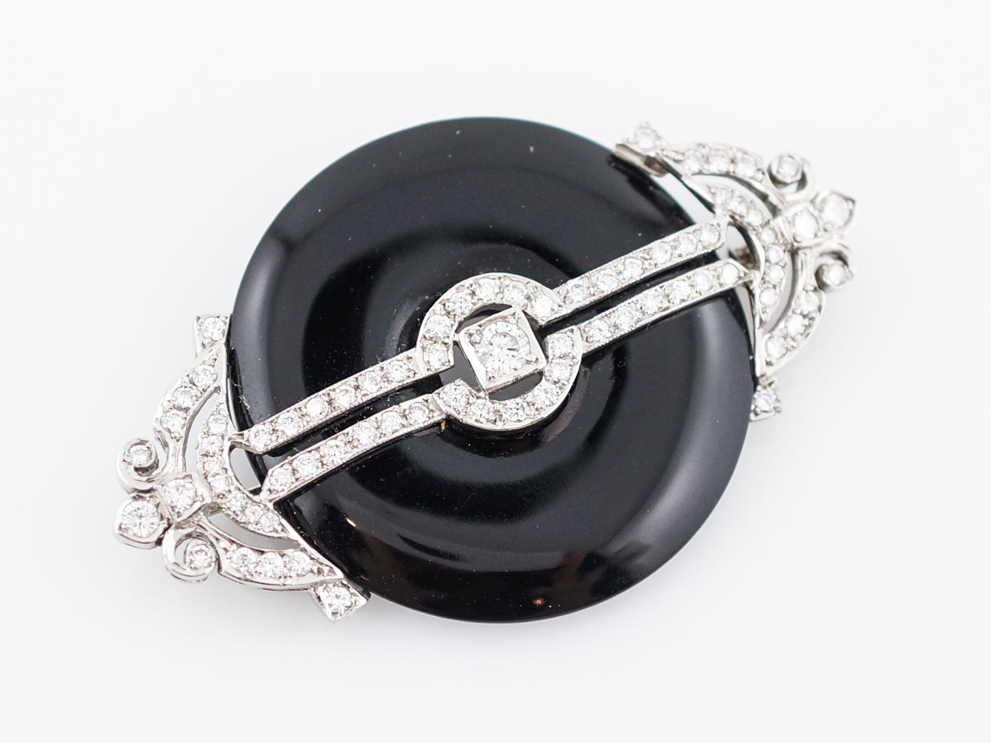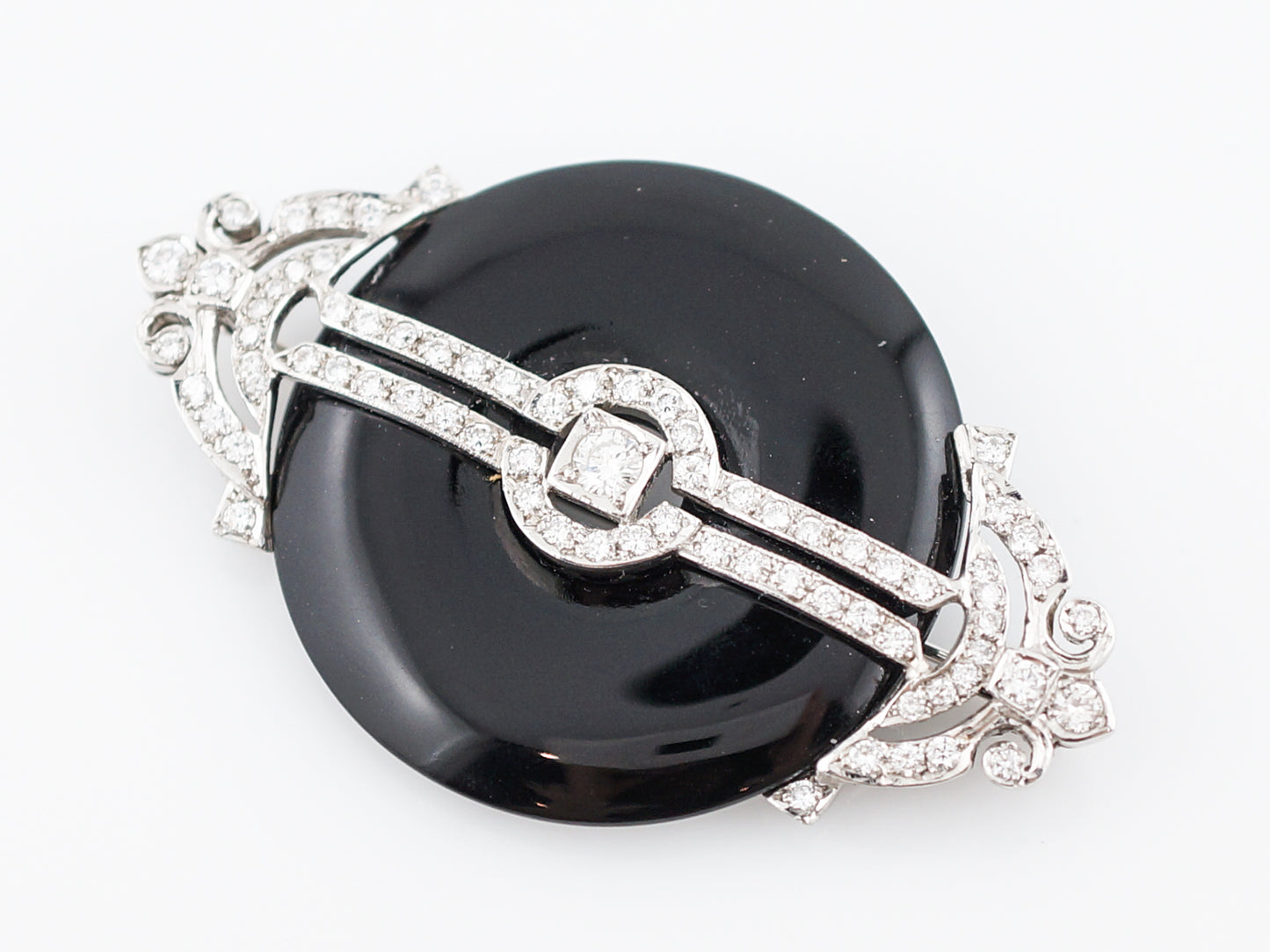 ***RTV***Art Deco Inspired Brooch Modern Onyx & Diamond in 18k White Gold