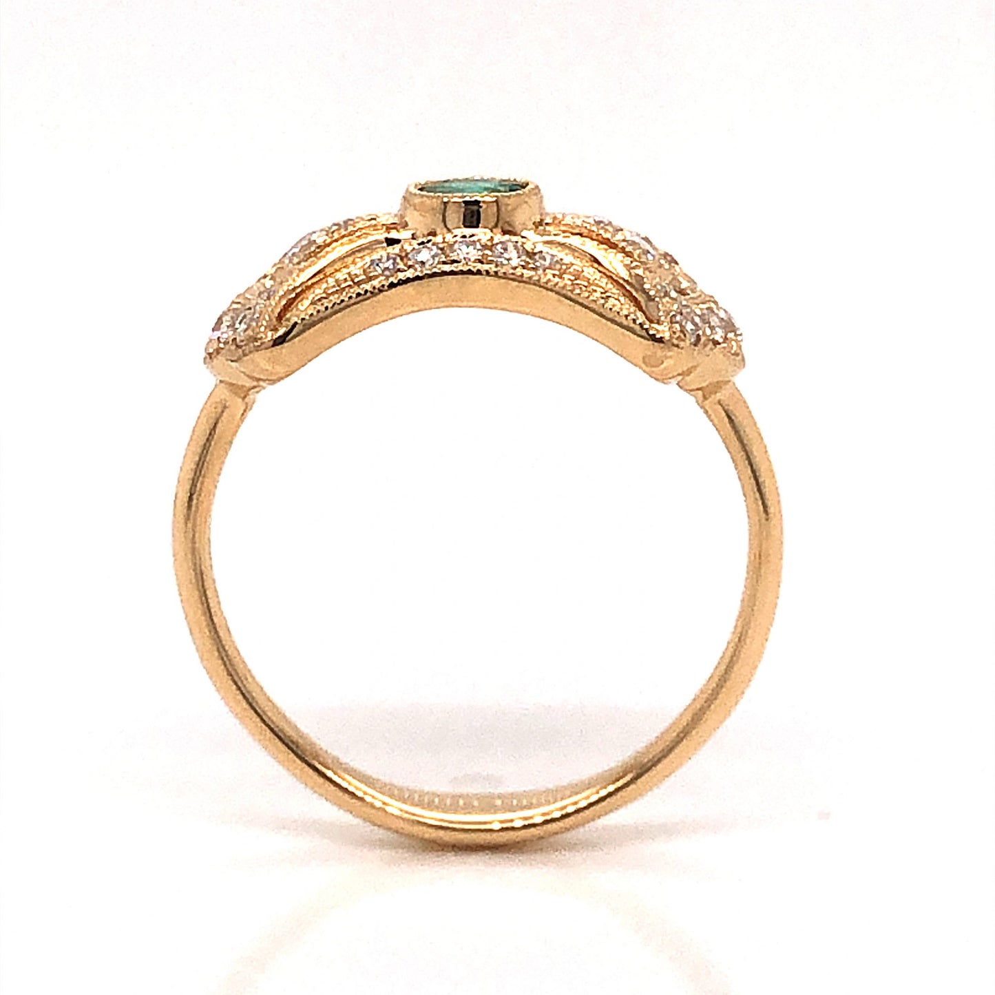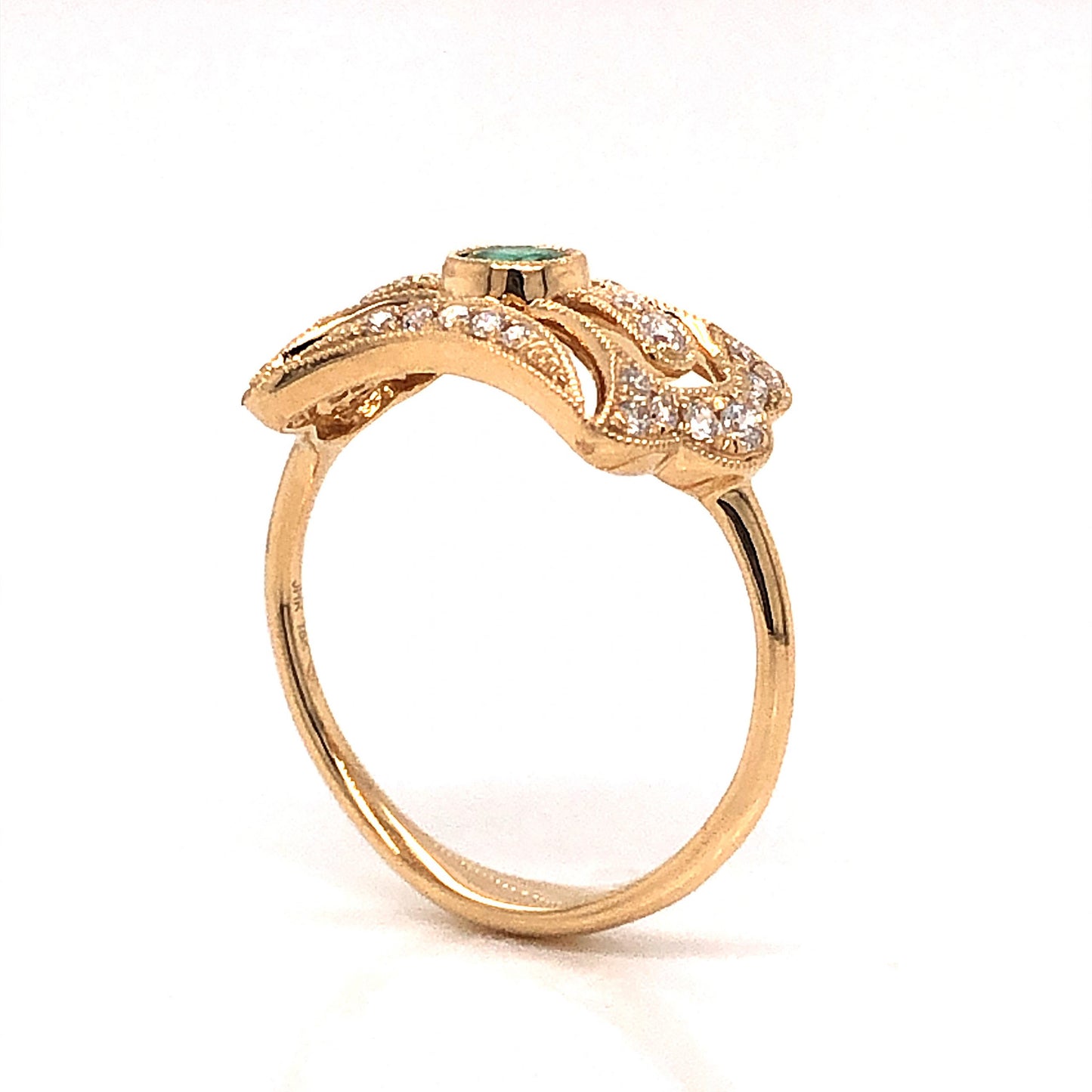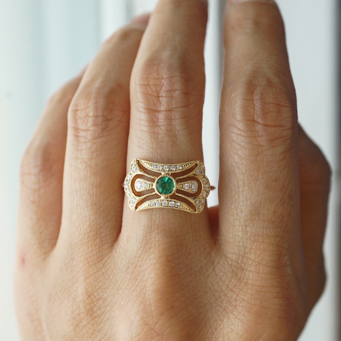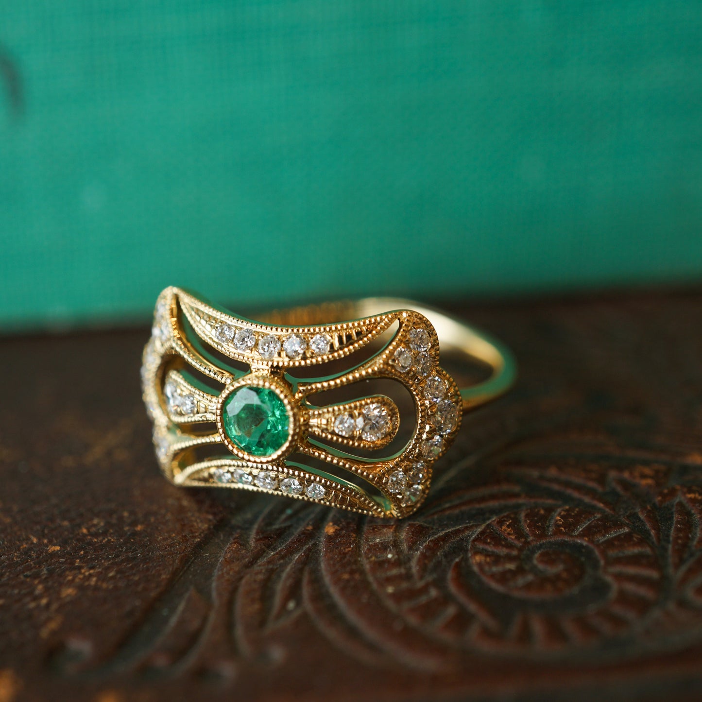Art Deco Inspired Emerald & Diamond Ring in 18k Yellow Gold