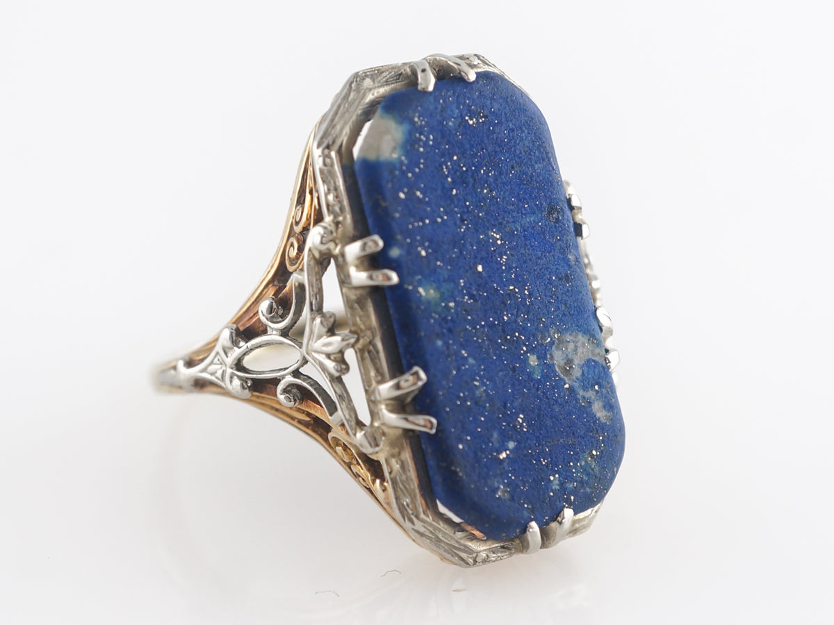 Art Deco Lapis Lazuli Ring in Yellow & White Gold