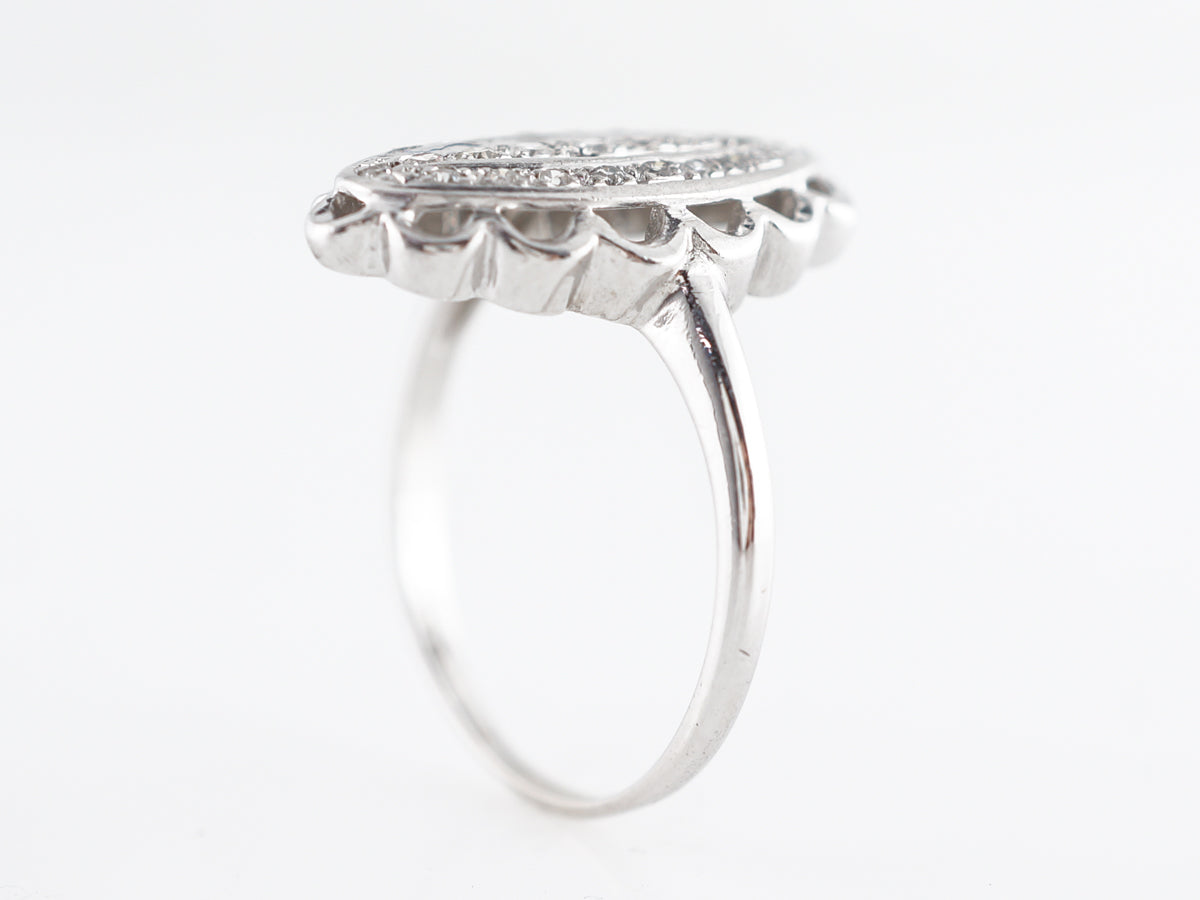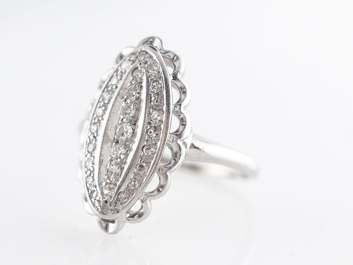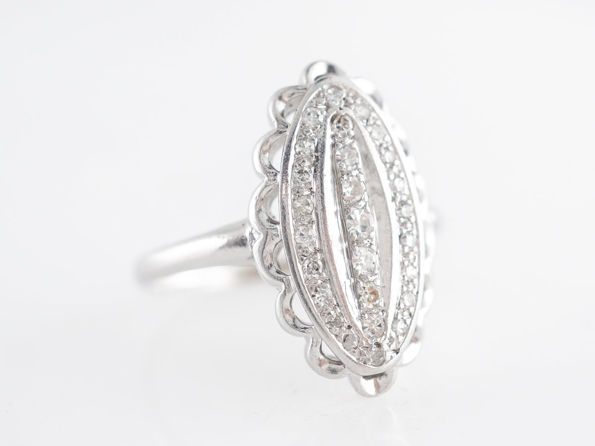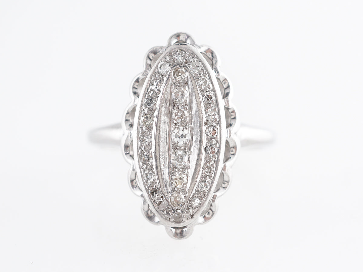 Art Deco Navette Ring w/ Diamonds 14k White Gold