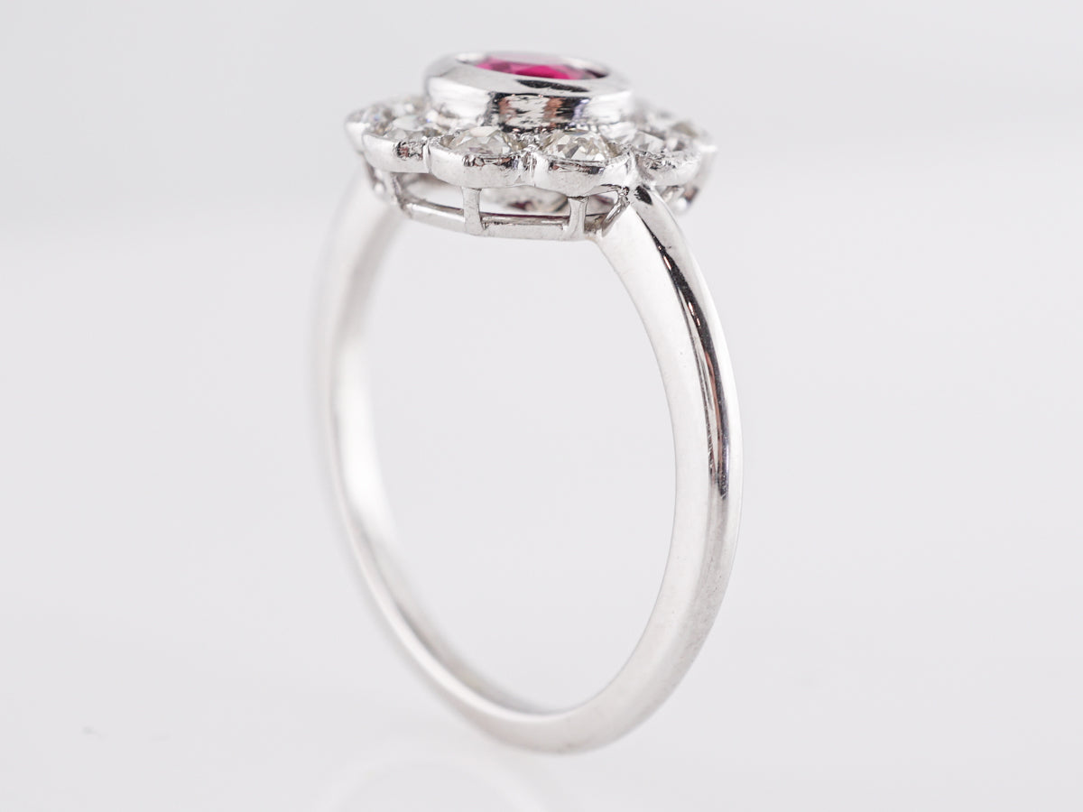 Art Deco Ruby Engagement Ring in 18k White Gold
