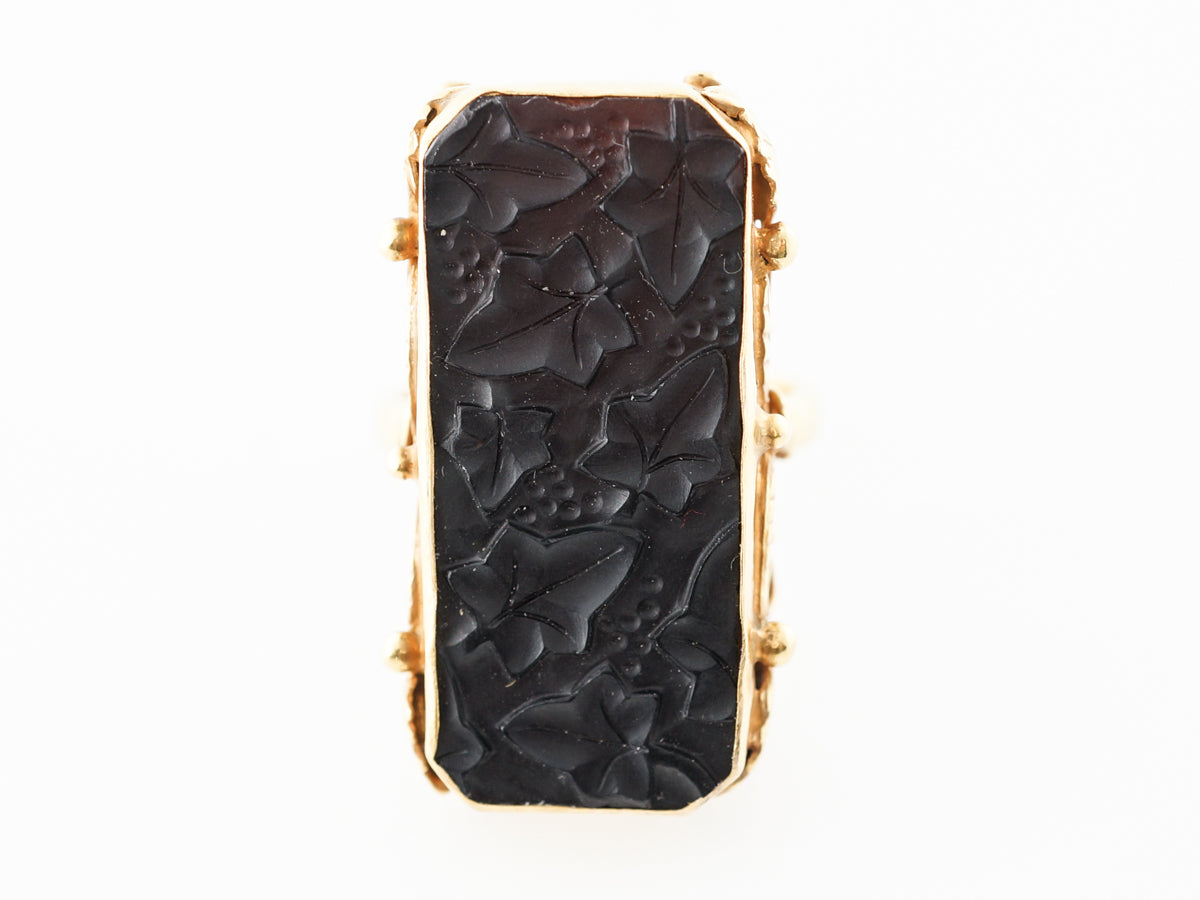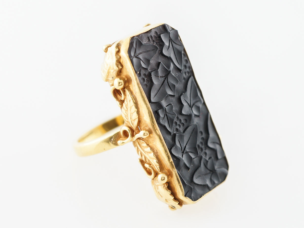 Arts & Crafts Carved Jet Ring 14k Yellow Gold
