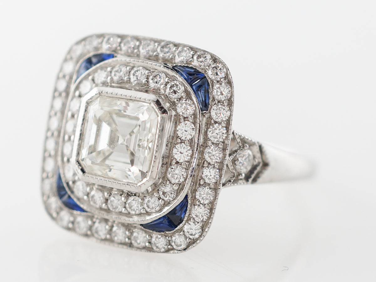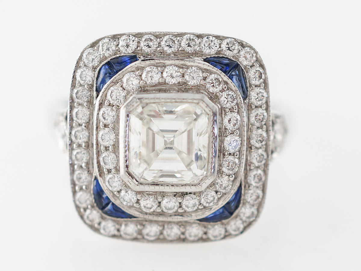 Asscher Cut Diamond Engagement Ring w/ Sapphire Accents