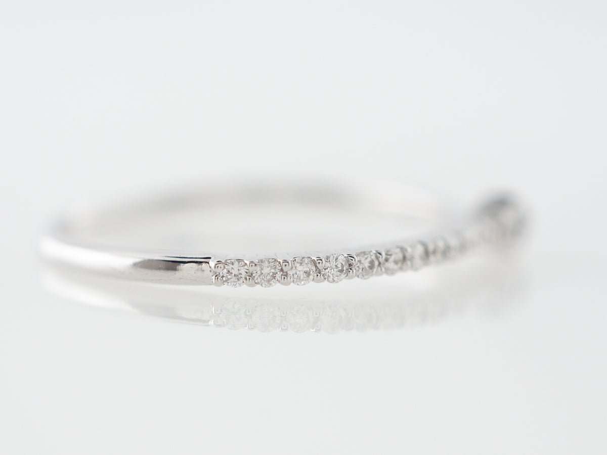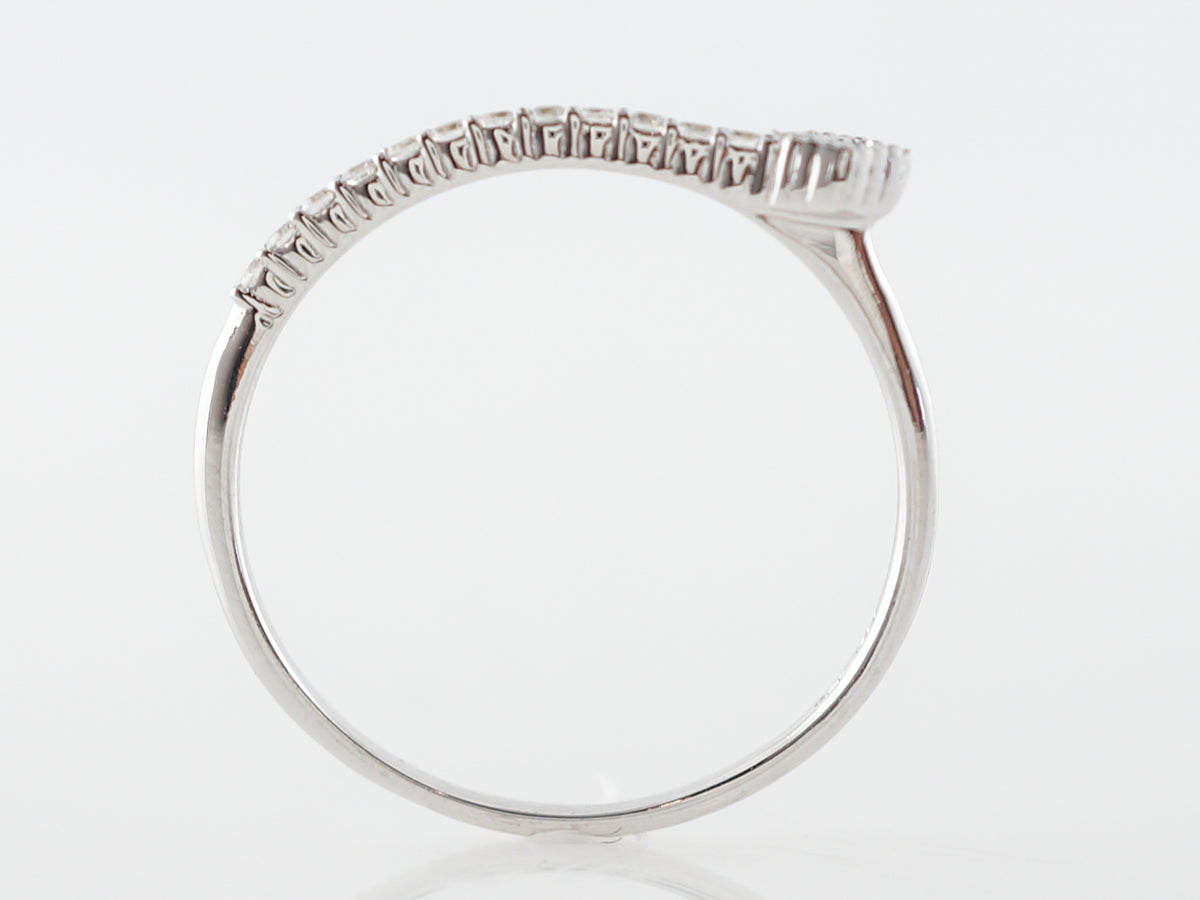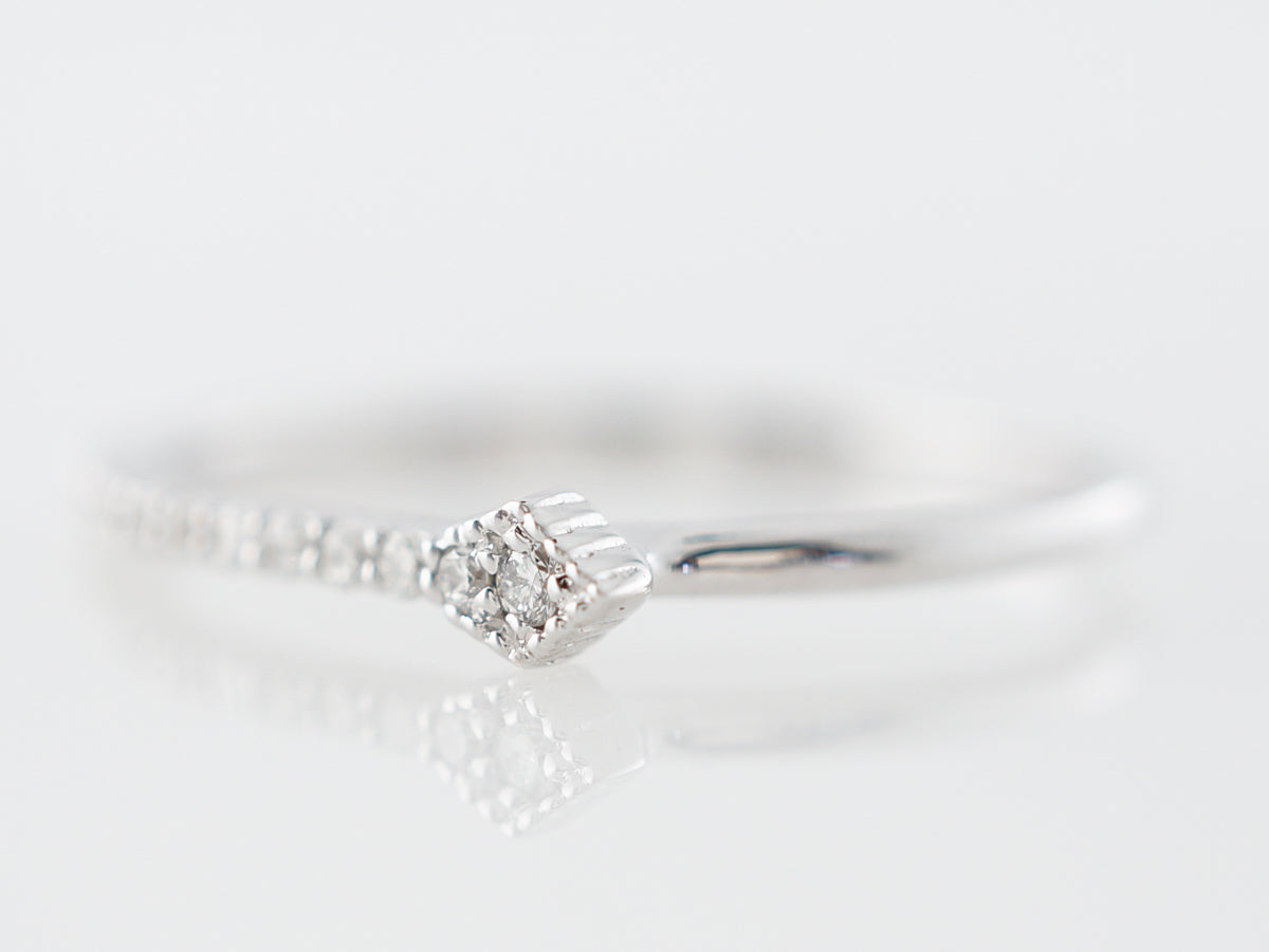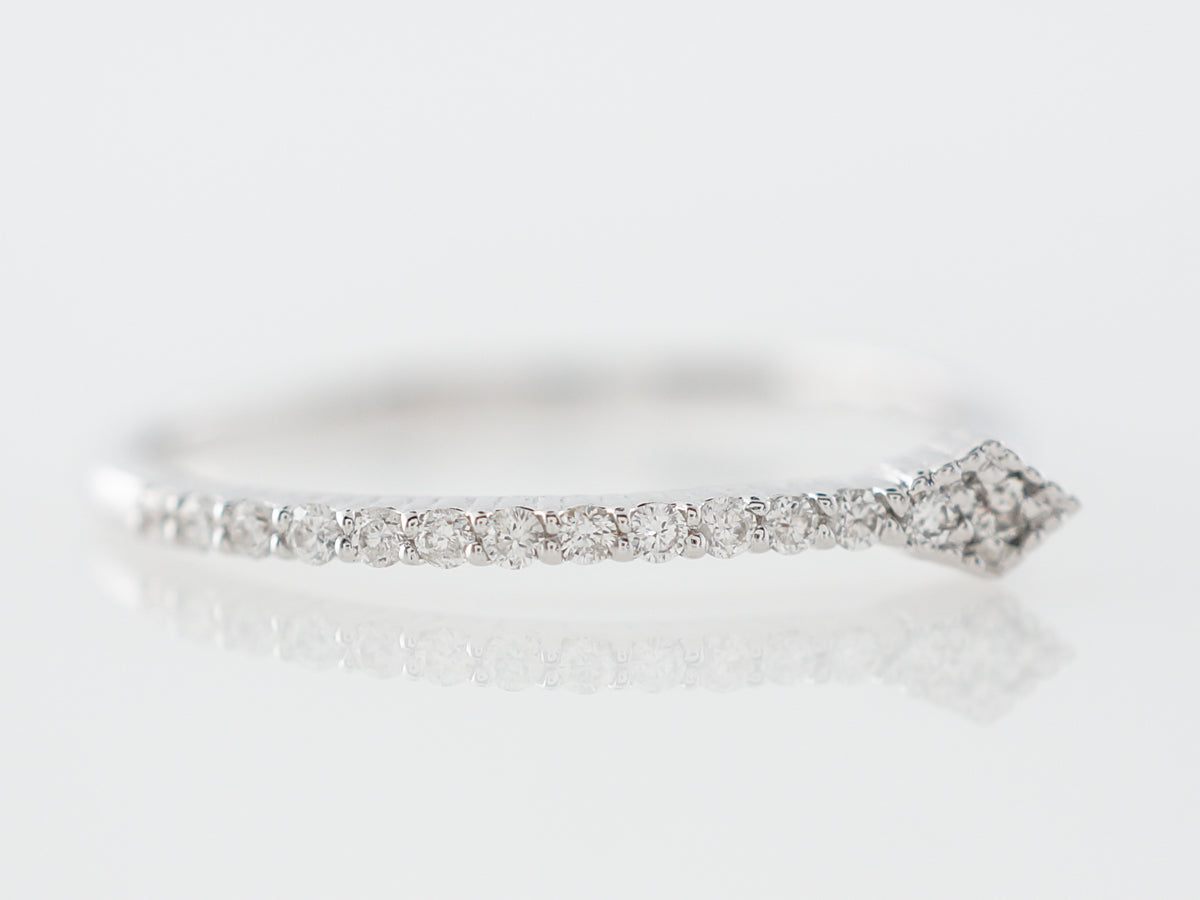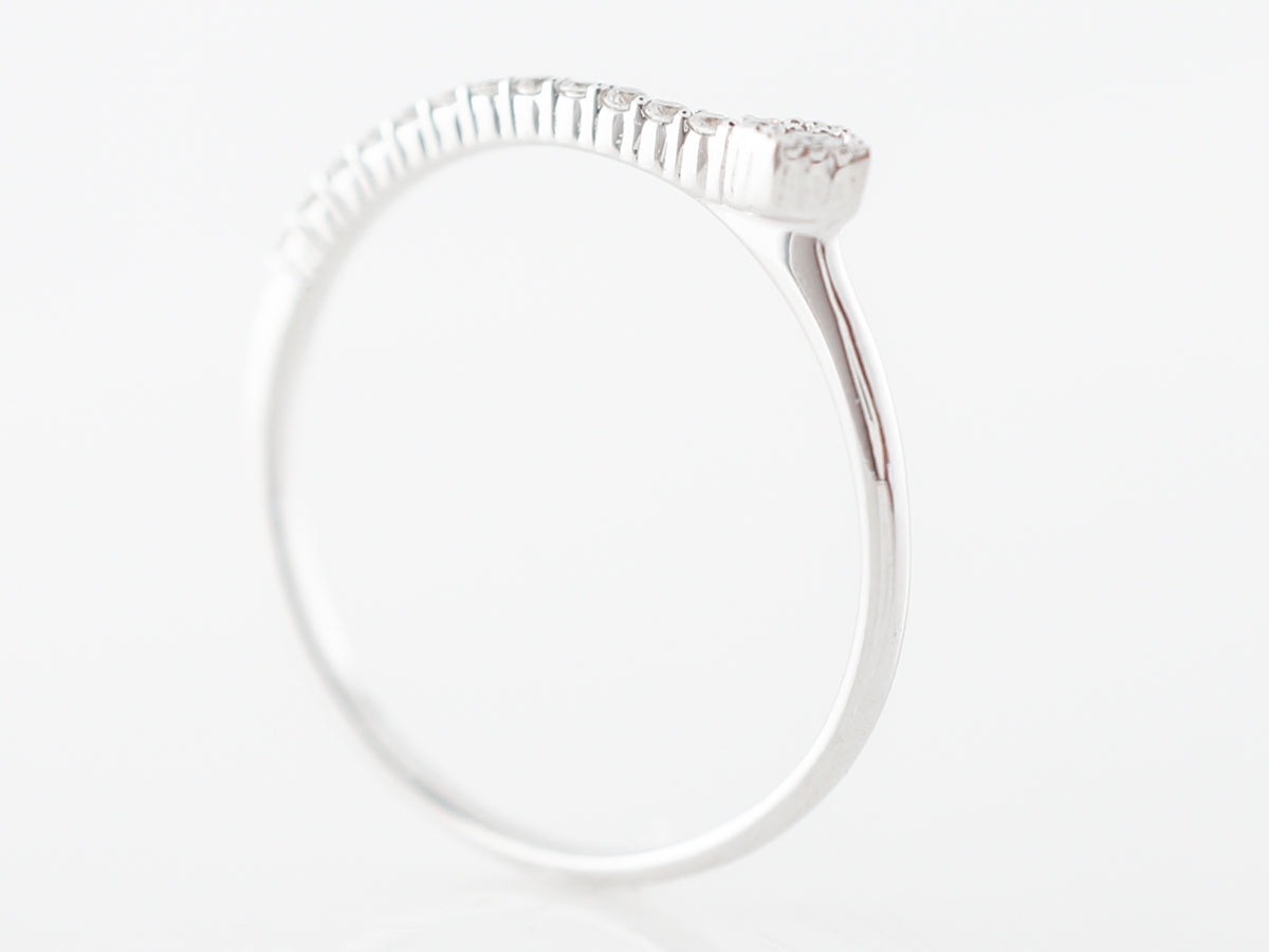 Asymmetrical Right Hand Ring w/ Diamonds in White Gold. This right hand ring features an interesting asymmetrical design and is finished in 14 karat white gold. The ring would be perfect for a right hand stack, its line of small diamonds really sparkle!