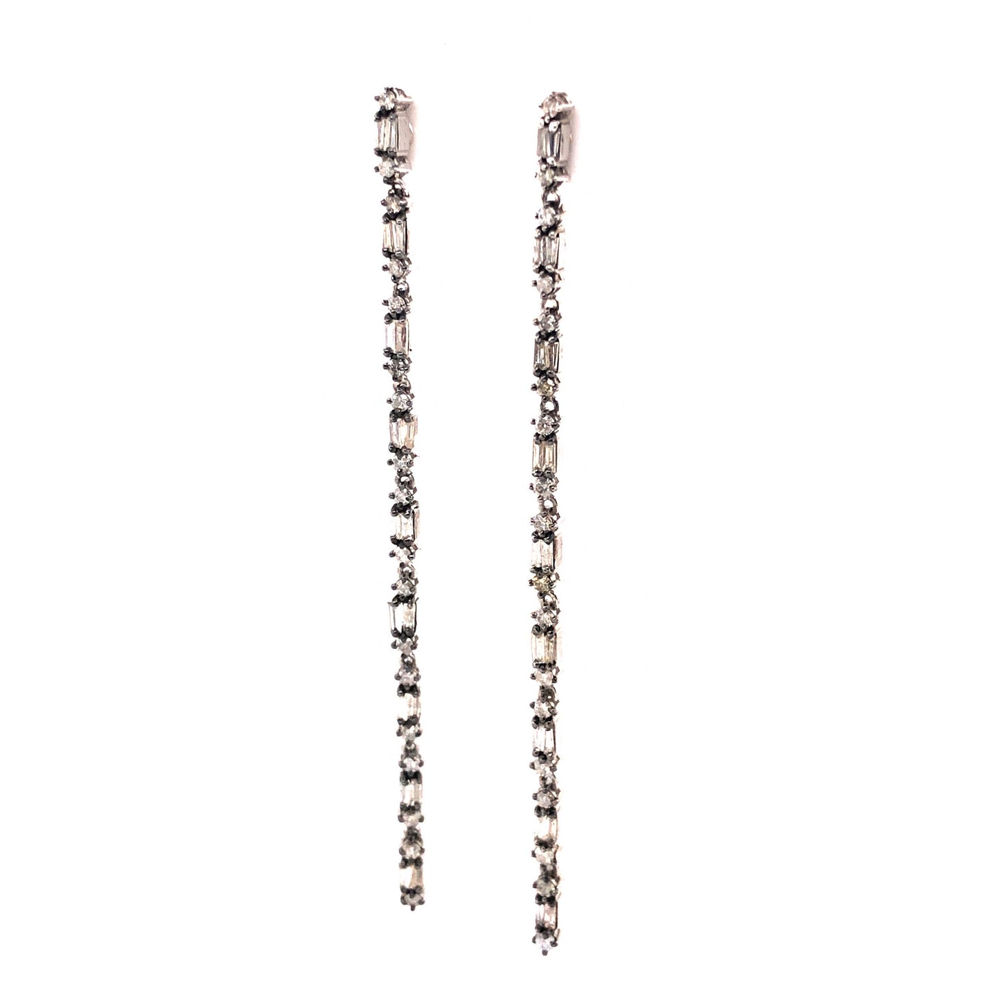 Baguette Cut Diamond Drop Earrings in Sterling Silver
