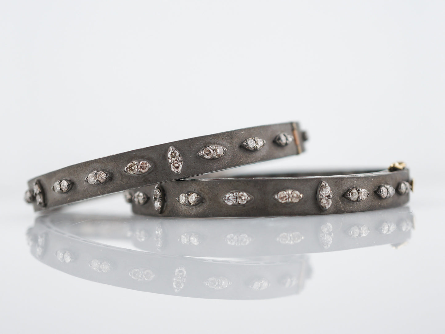 Bangle Bracelet Modern 2.20 Round Brilliant Cut Diamonds in Sterling Silver