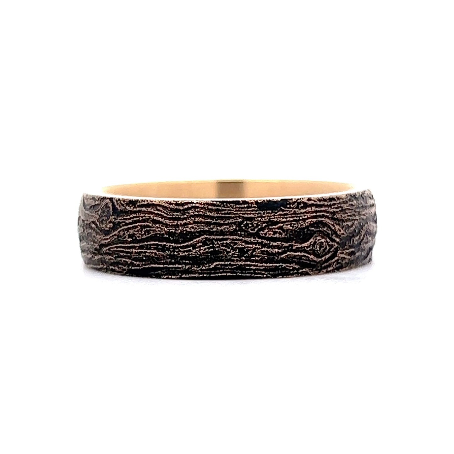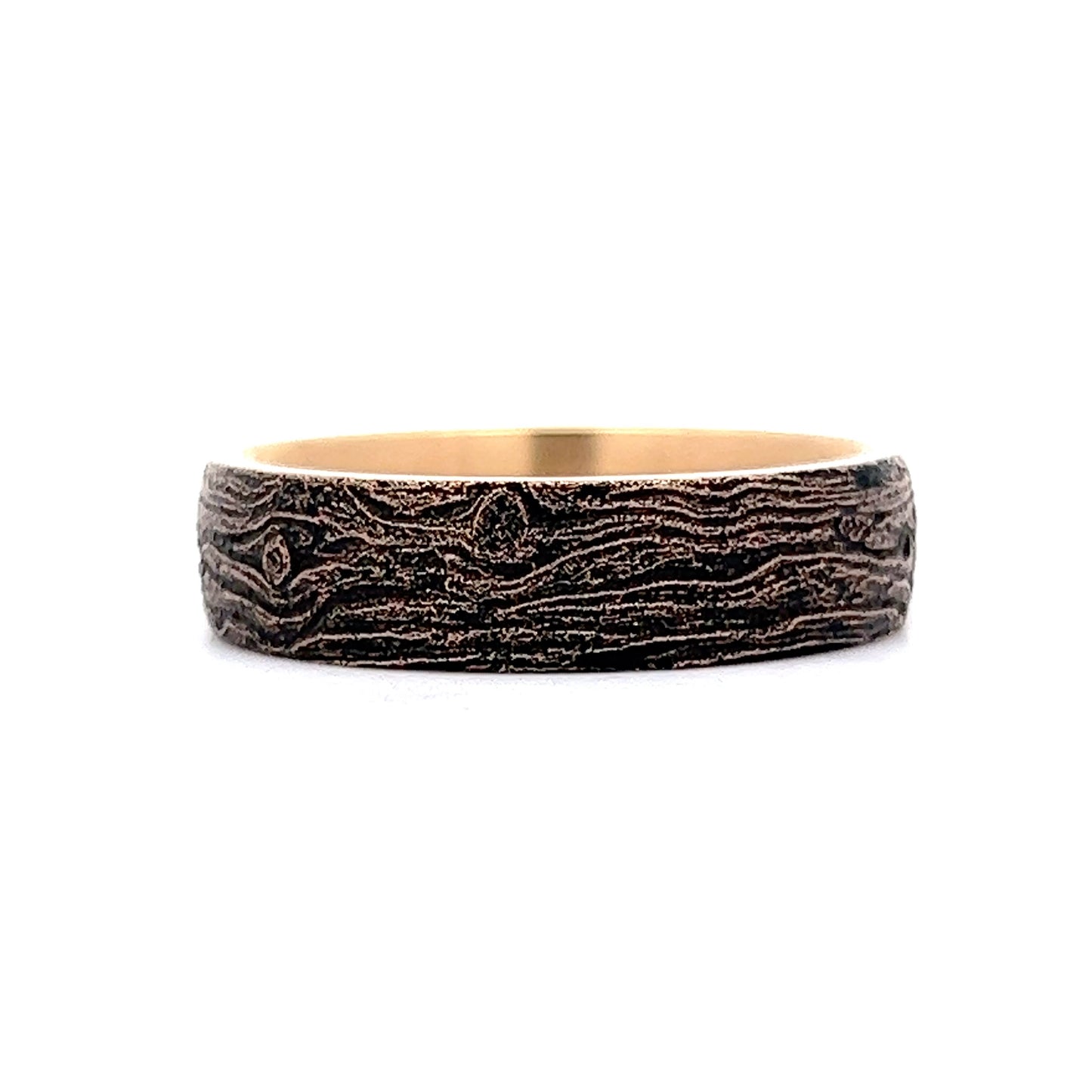 Benchmark Men's Tantalum Tree Bark Textured Wedding Band in 14k Yellow Gold