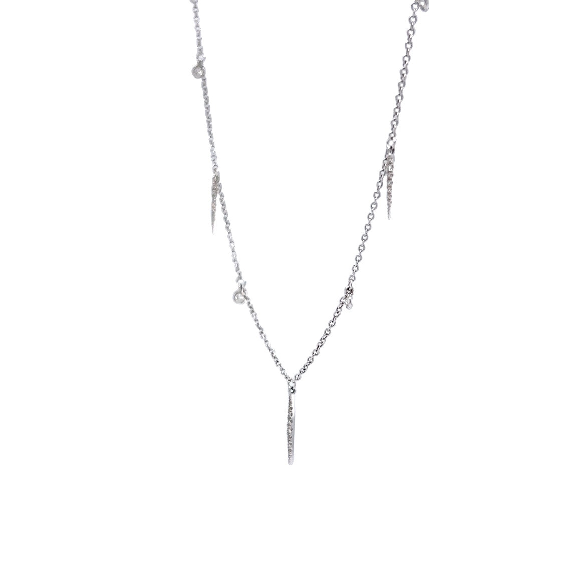Bezel & Pave Diamond Necklace in 18K White Gold