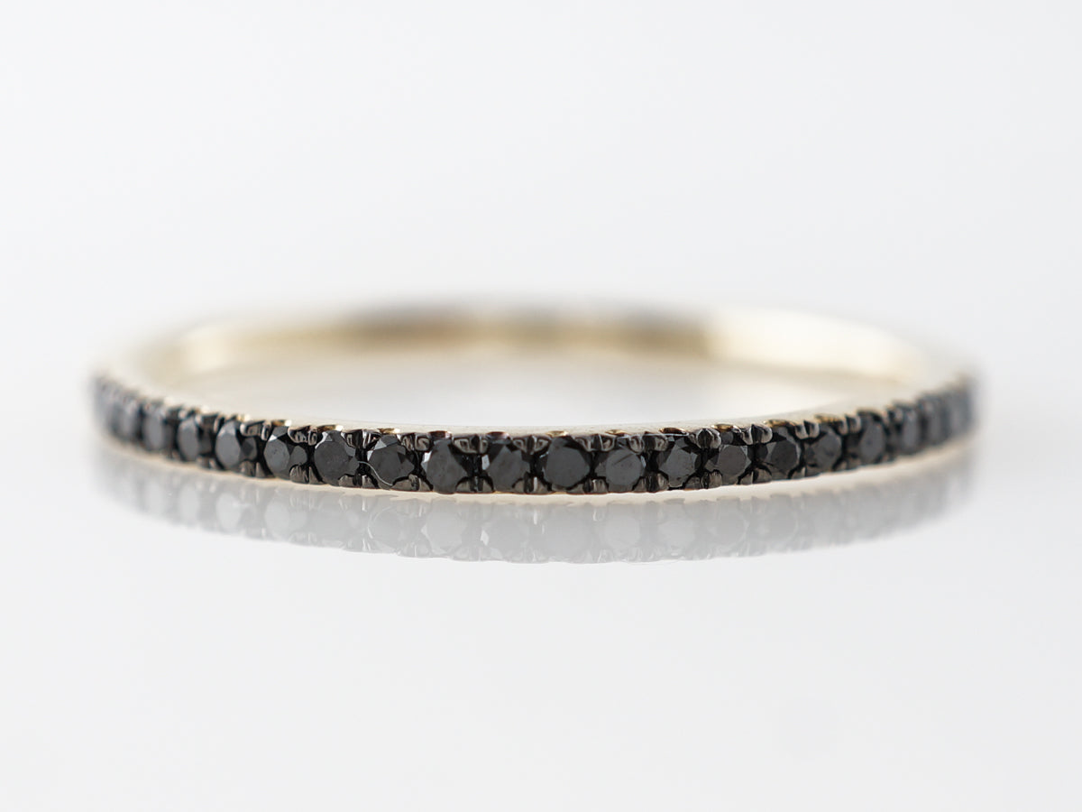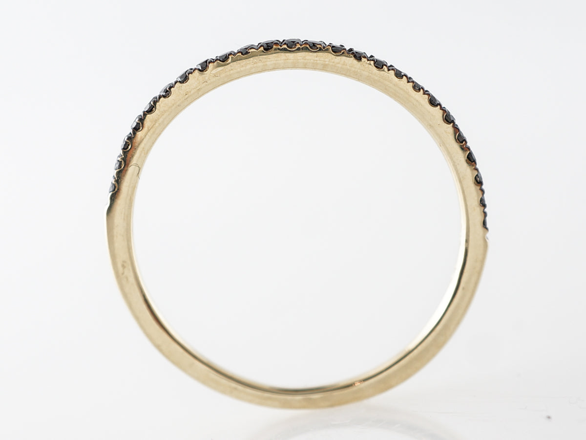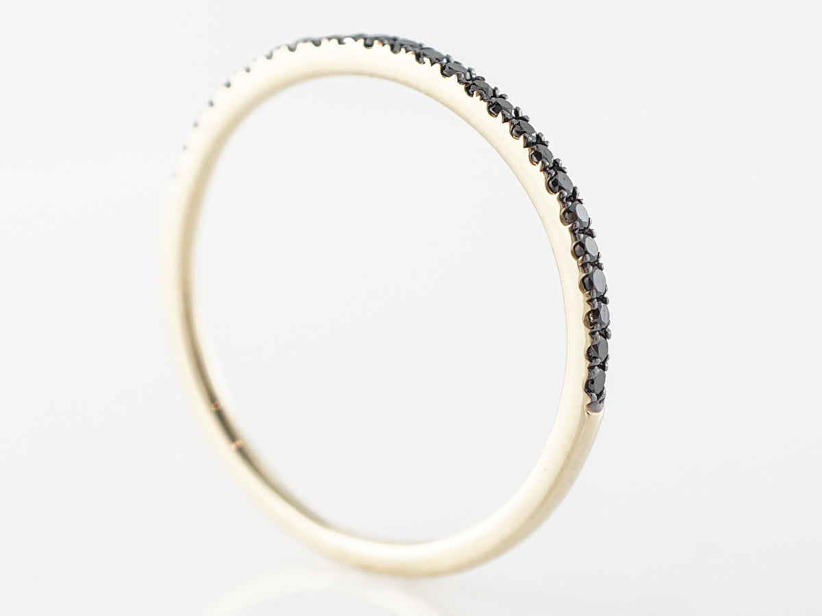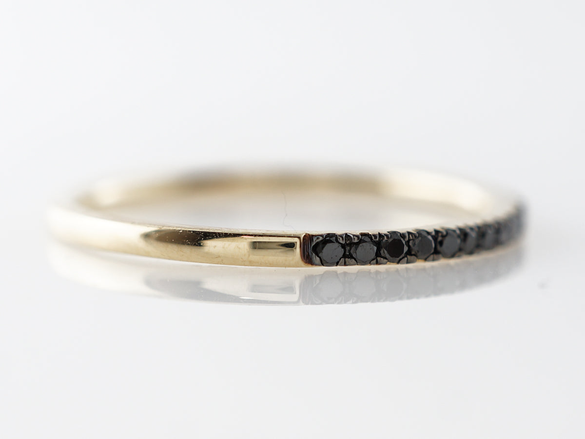 Black Diamond Wedding Band in 14k Yellow Gold. This modern half-eternity wedding band features .16 carats of black diamonds and is set in 14 karat yellow gold. The stunning contrast of black diamonds with warm yellow gold will add a unique look to any stack or engagement ring.
