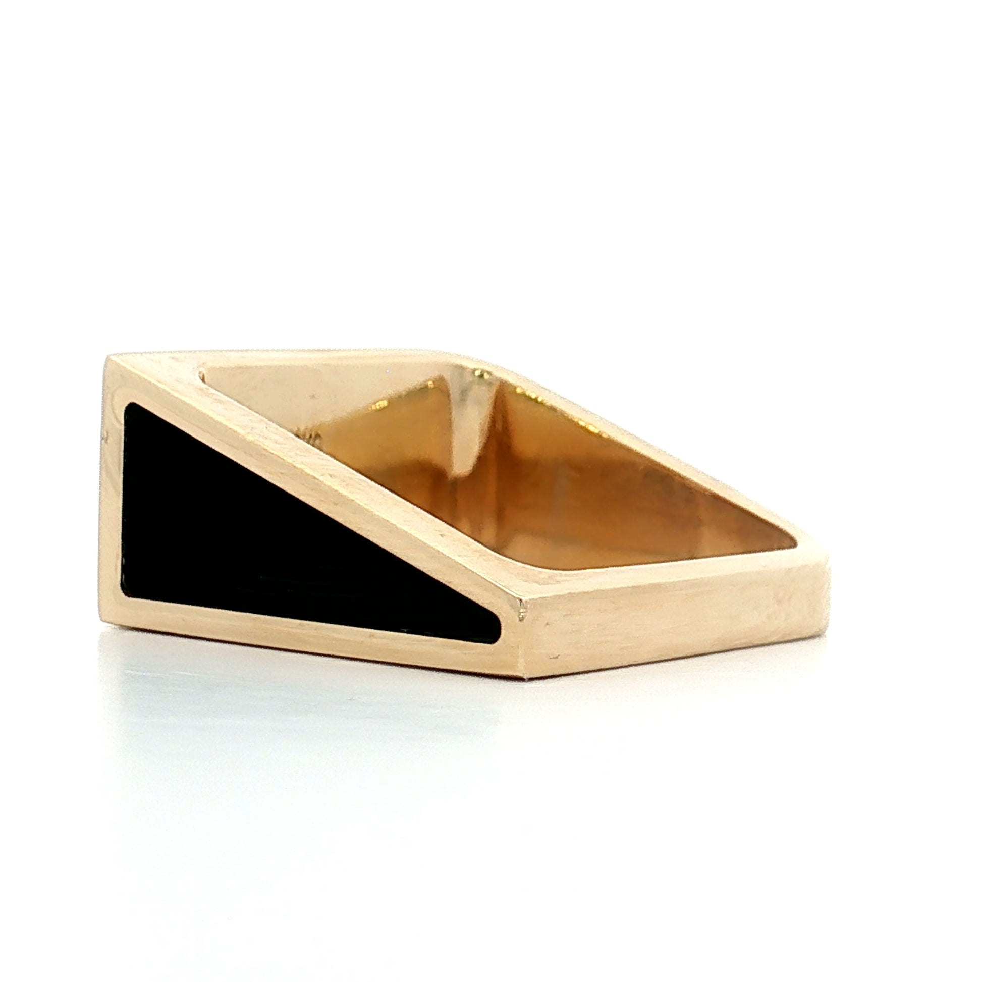 Black Onyx Triangle Cocktail Ring 14k Yellow Gold