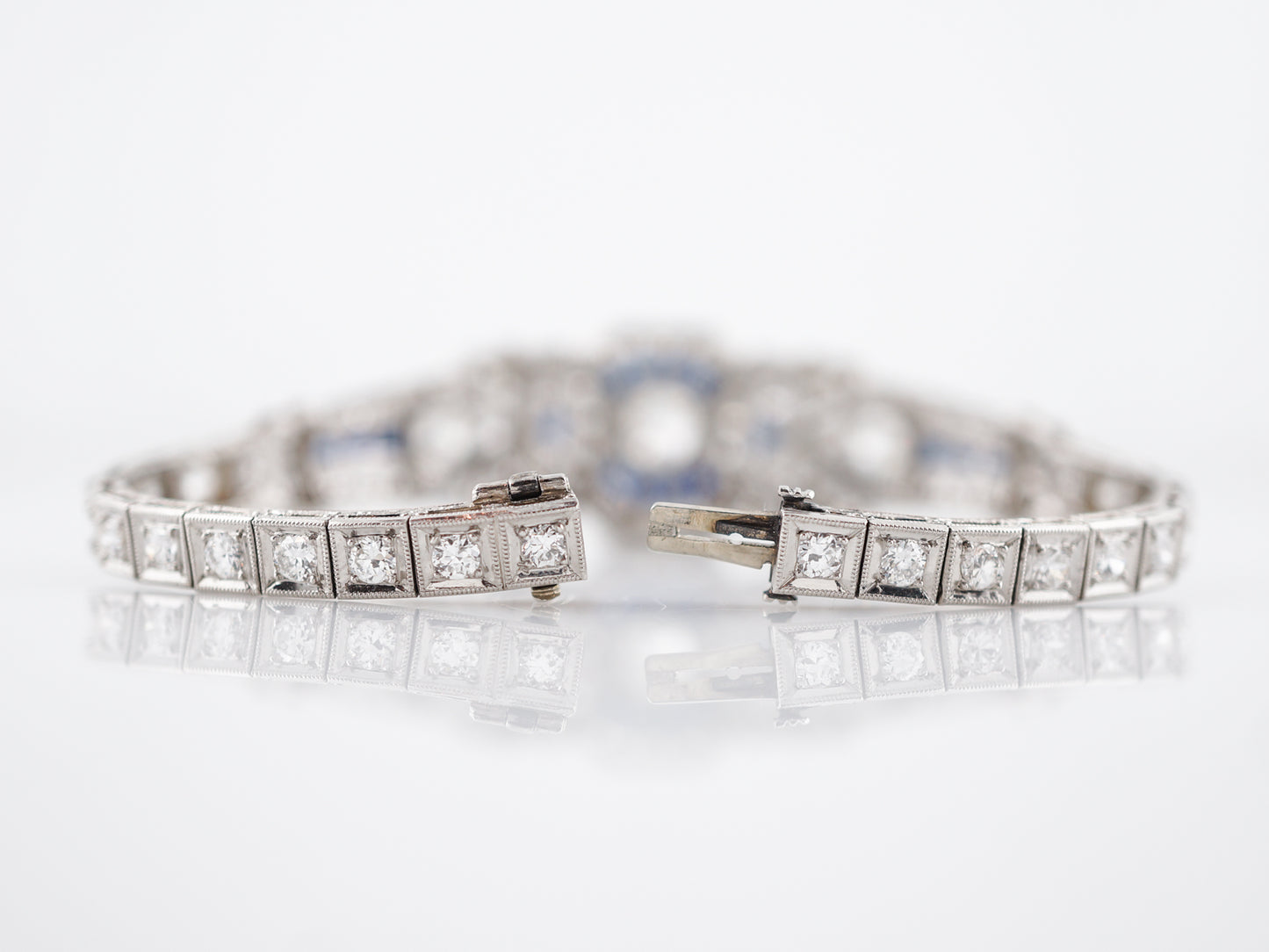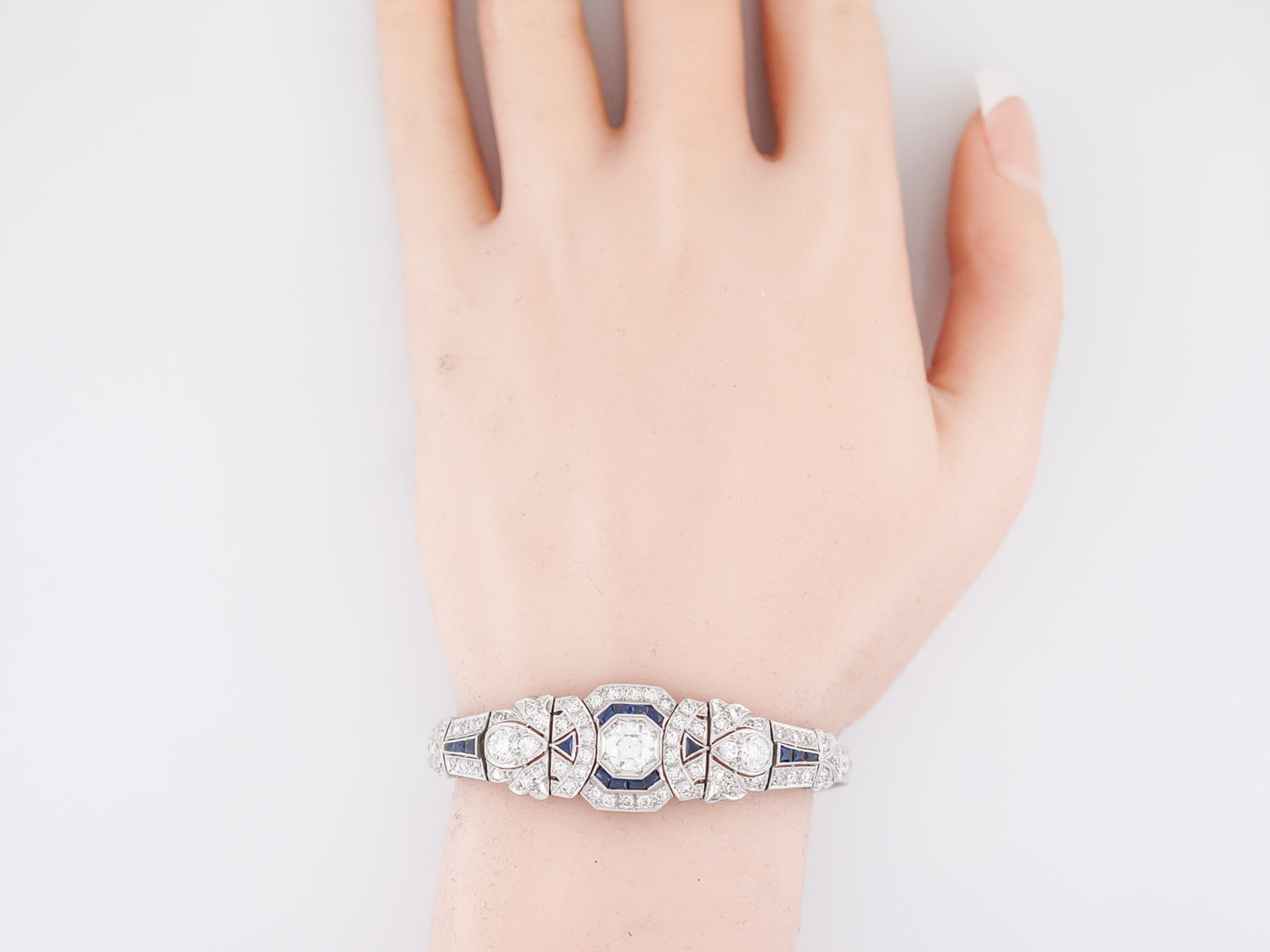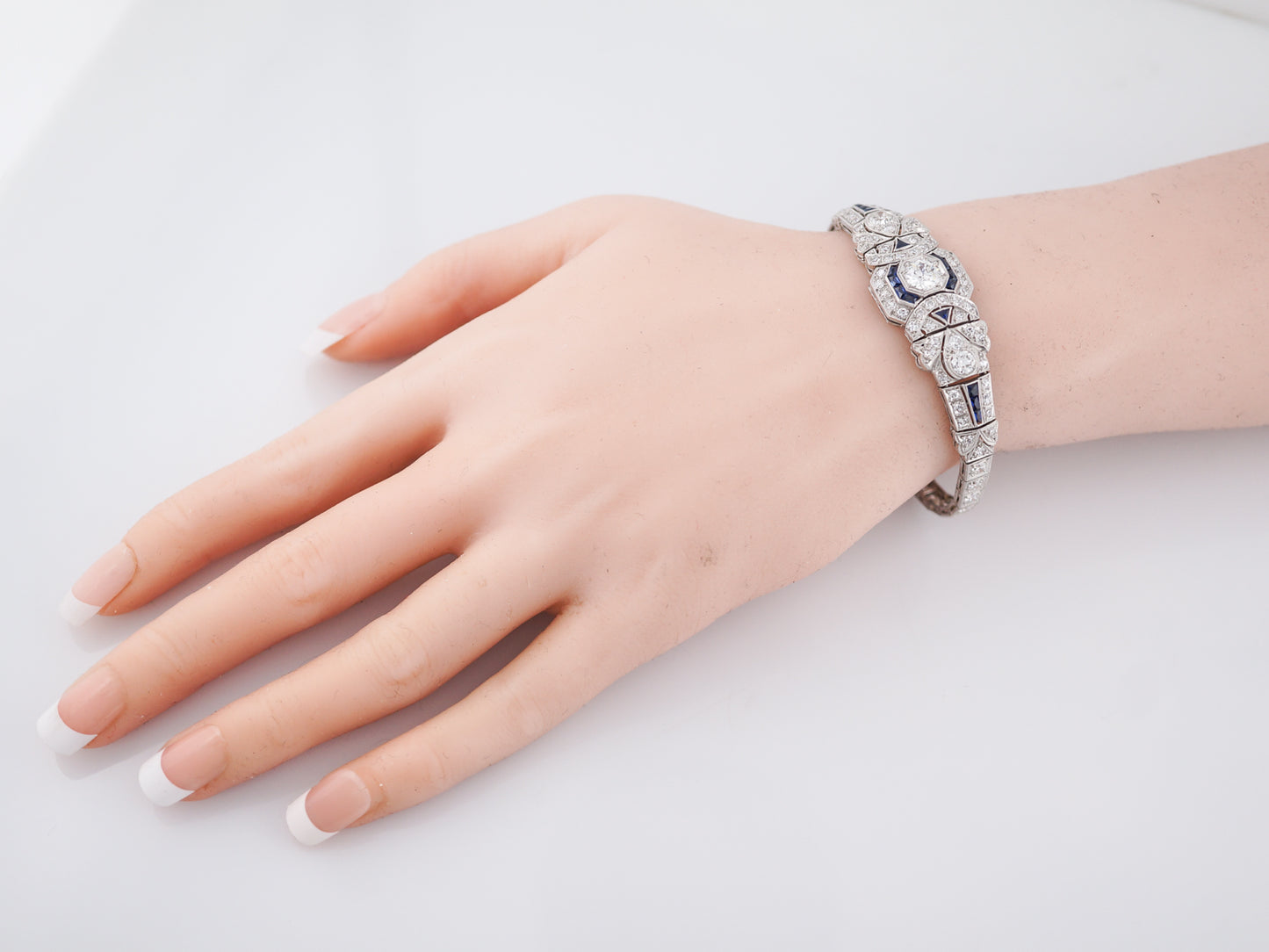 Bracelet Modern Art Deco Style 4.55 Old European Cut Diamonds & .96 Sapphire in Platinum
