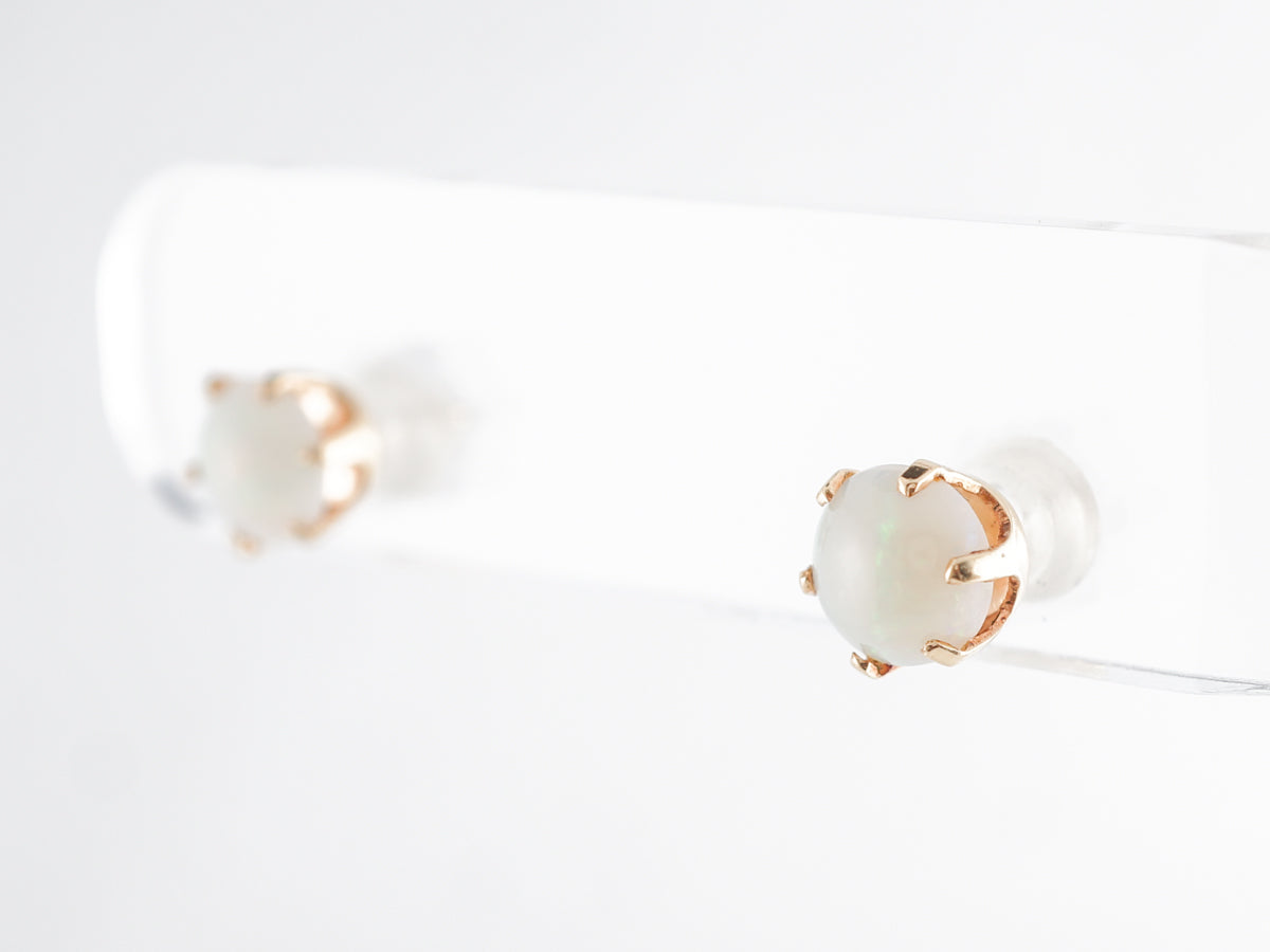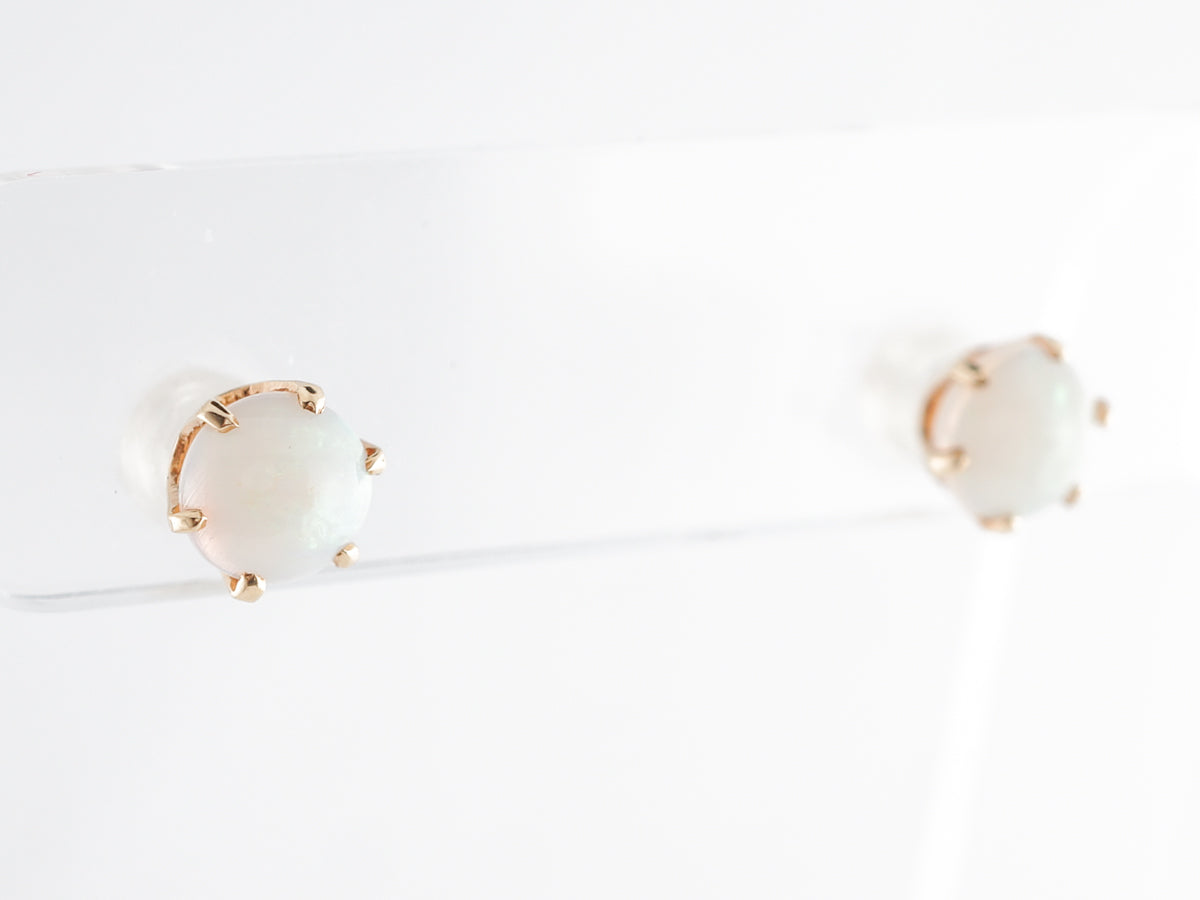 Cabochon Cut Opal Stud Earrings in 14k Yellow Gold
