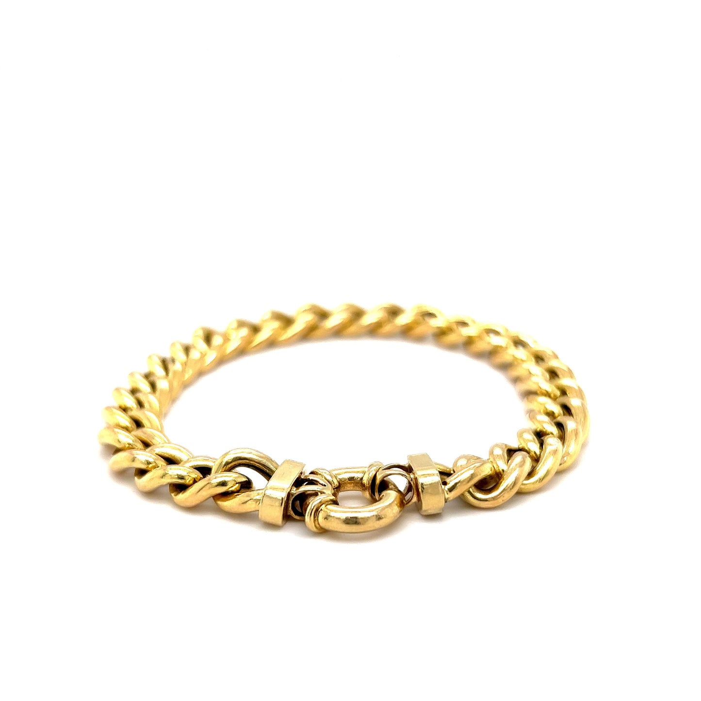 This chic classic curb link bracelet is the perfect addition to any collection. Crafted in 14k yellow gold. Luxurious and durable. Wear to the office or a night out. The iconic curb chain links are complete with a bold spring ring clasp that looks like a charm! Stack or wear on its own. A thoughtful gift for you or your loved one.