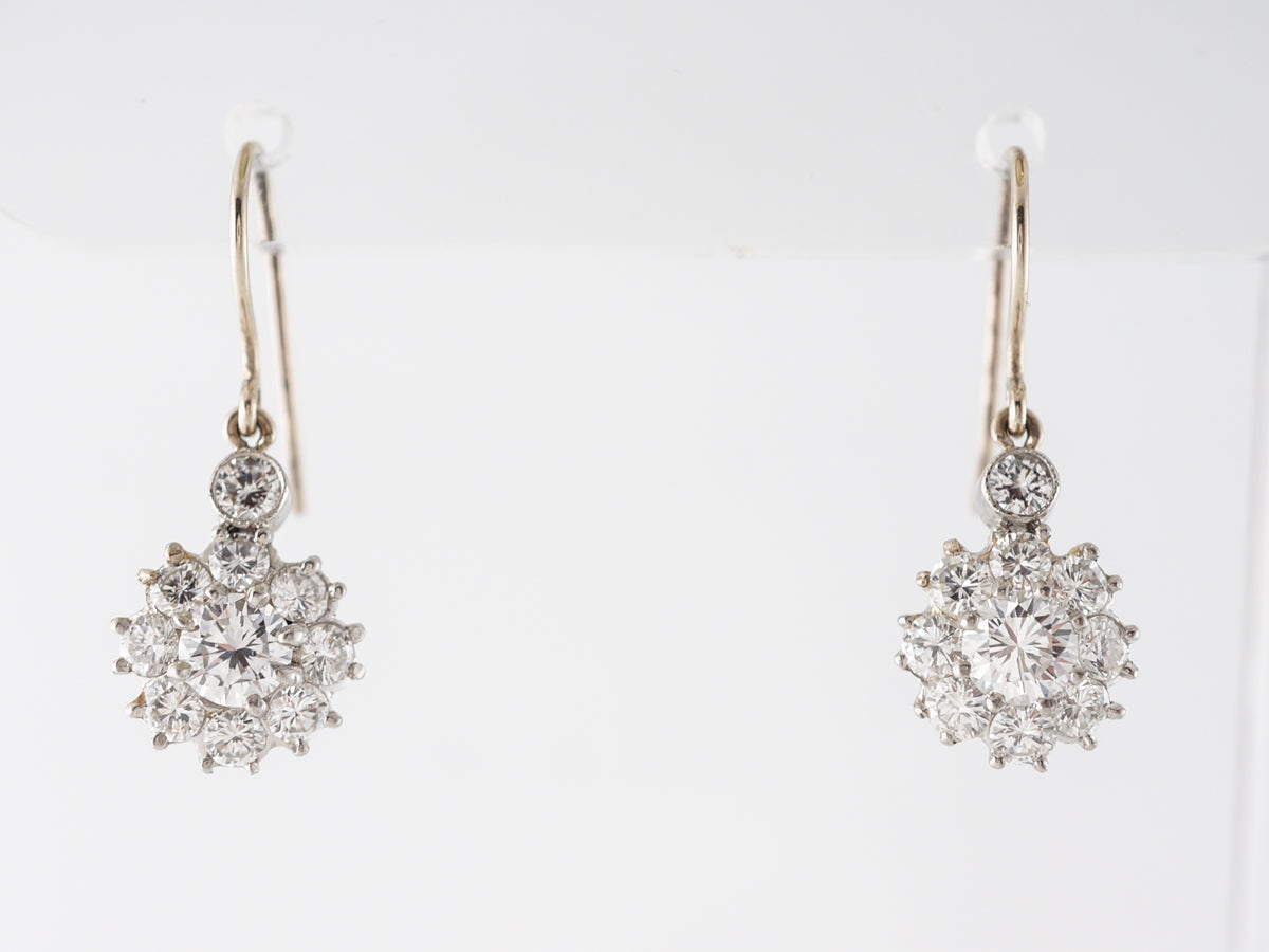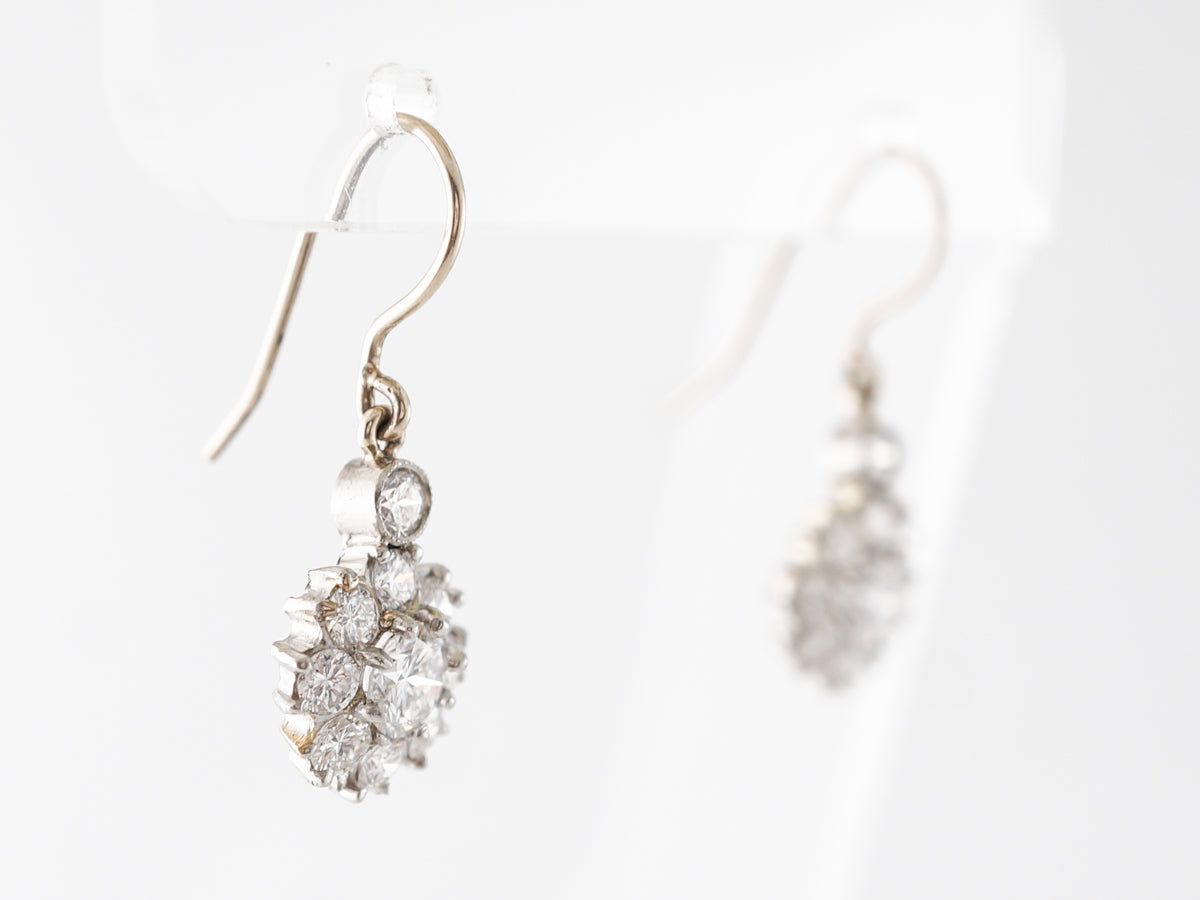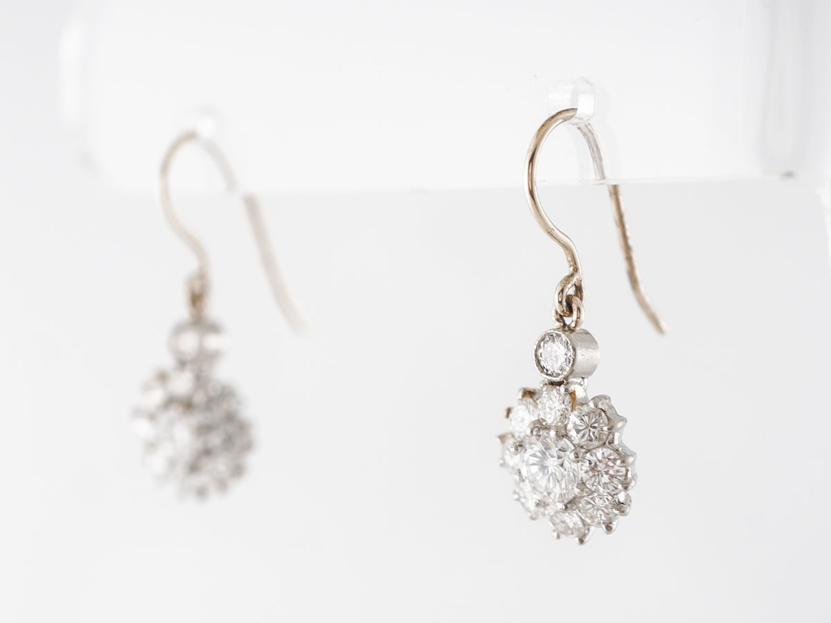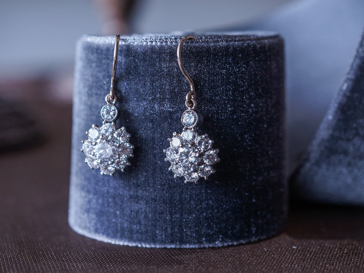 Cluster Diamond Dangle Earrings in Platinum & White Gold