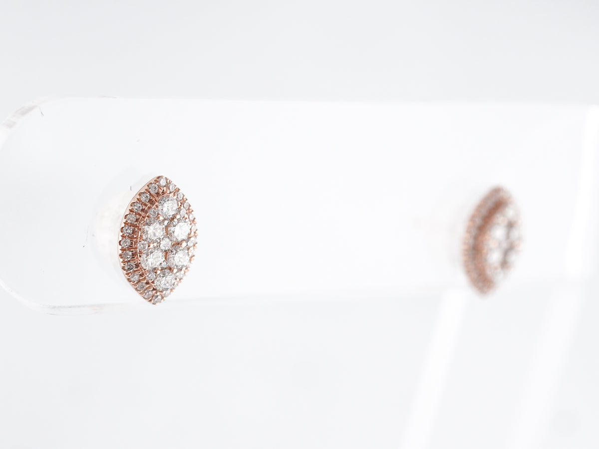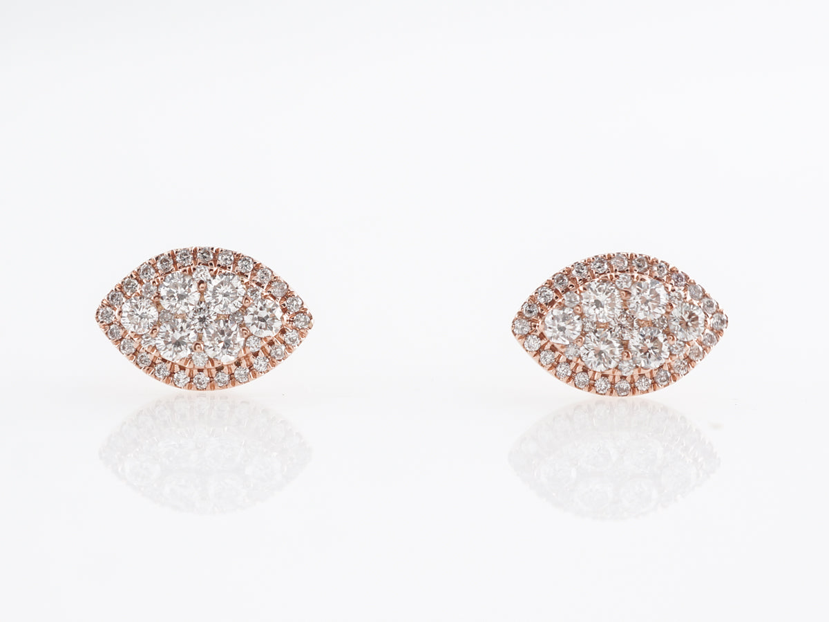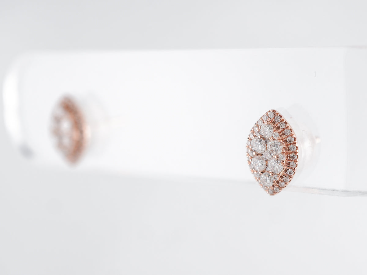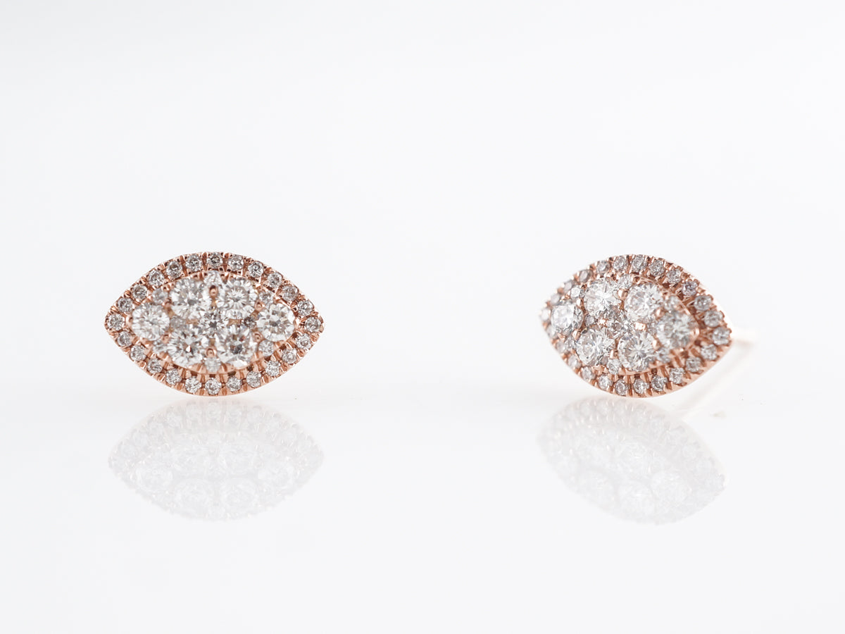 Cluster Diamond Marquise Earrings 14K Rose Gold. These modern cluster earrings feature .42 carats of diamonds and are finished in 14 karat rose gold. The clusters are marquise shaped with smaller diamonds outlining the border and larger stones in the center. These would be great for everyday wear and fancy evening wear as well!
