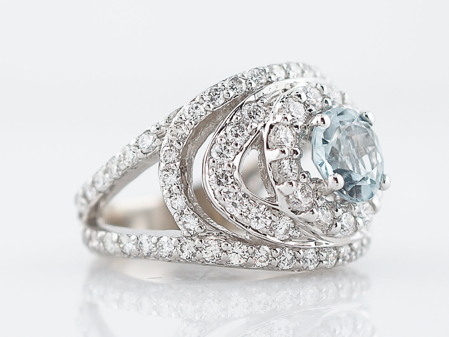 Cocktail Ring Modern 1.20 Round Aquamarine in 18k White Gold